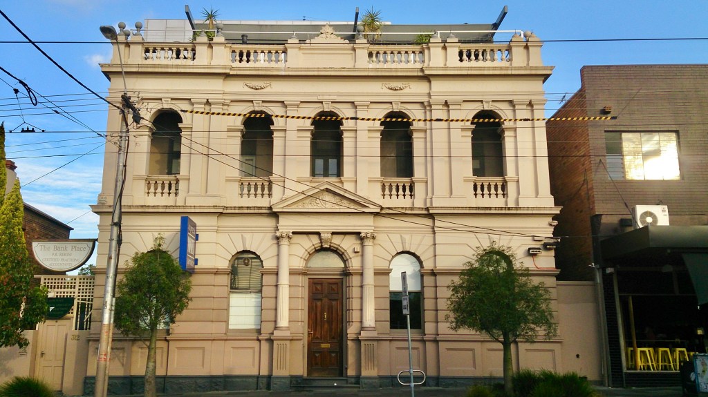 A pair of similar grand 1880s banks in High Street Northcote, both quite intact, and both with first floor arcaded porticos. The first was the #LondonCharteredBank, can’t find a precise date, but was by #OakdenAddisonanandKemp – a surprising style for them, they liked to do the latest Queen Anne, which they used a few times for the ES&A. The second date from 1890, designed by George Jobbins for the National Bank of Australasia.
