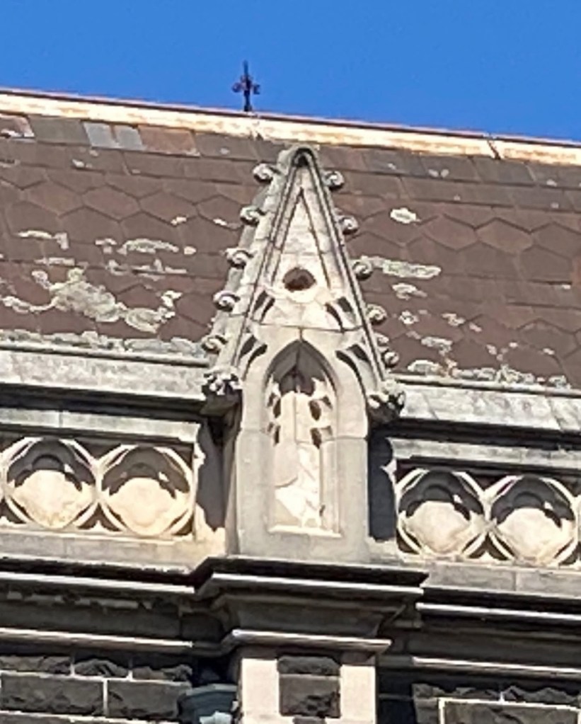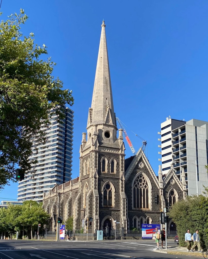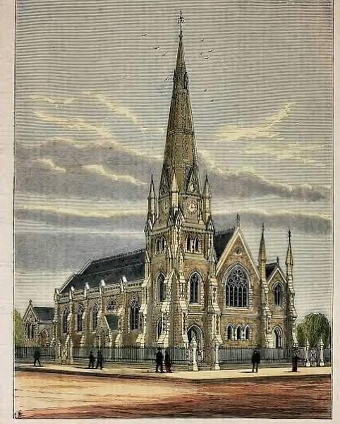 StKildaPresbyterianChurch. Posted this 6 months ago, they’ve taken away the scaffolding now, and I saw they’d put new #stonework on the #gables; ones got a little spire/crocket thing, but the bigger one doesn’t, thought it was odd, so found an old photo (no date possibly 1950s #StKildaHistoricalSociety) and sure enough there was another one, so why didn’t it get reproduced ? I know it’s only a little thing, but soooo annoying. Also lost the four #spirelets around the #spire. Still think it’s a pretty ordinary church, I mean nice enough, but no outstanding features. #JohnBewicke, of Beswicke & Finch, 1885.