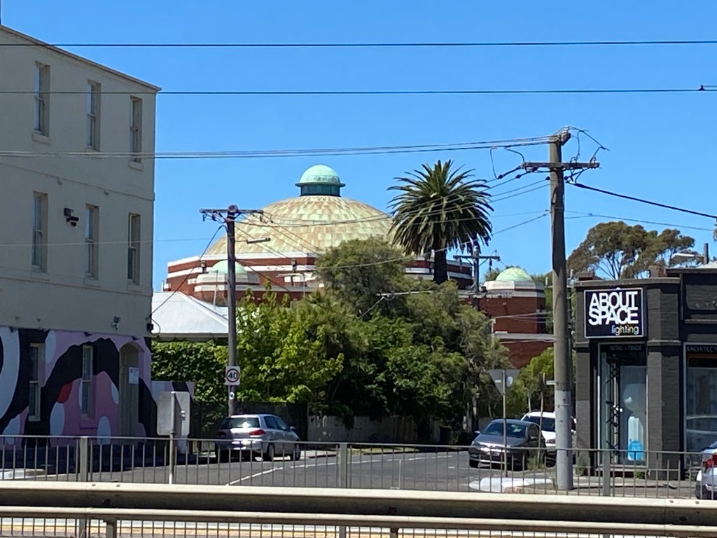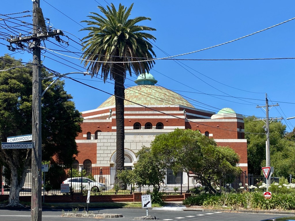 Posted this in 2015, a grand slightly exotic place I’d never seen before – the first St Kilda Synagogue. The impressive twin domed towered front was built in 1904, designed by the versatile and prolific Nahum Barnet. The work was funded by Moritz Michaelis, who lived at Linden, the Acland Street mansion that’s now a gallery. Before that, it was in the form of a classical temple, built in 1872, and designed by Crouch & Wilson, who weren’t Jewish and in fact did lots of churches. I couldn’t find any photos, and not sure the classical front was ever completed like that. It was superseded by the much larger current one over the road, which opened in 1927, and then the original one was ‘completely remodeled’ into a hall in 1932, before being sold in 1940; its site at no 17 Charnwood Grove is now a nice Tudor Revival block of flats. The synagogue was sort of slightly out of the way, in a residential street, but then the Jewish community didn’t have land granted like the churches, so I guess when the street was created c1870, the local community thought it was a good central spot to buy, located between all the families, who were spread across St Kilda and what we now call East St Kilda. I had to research newspapers to get all those dates !