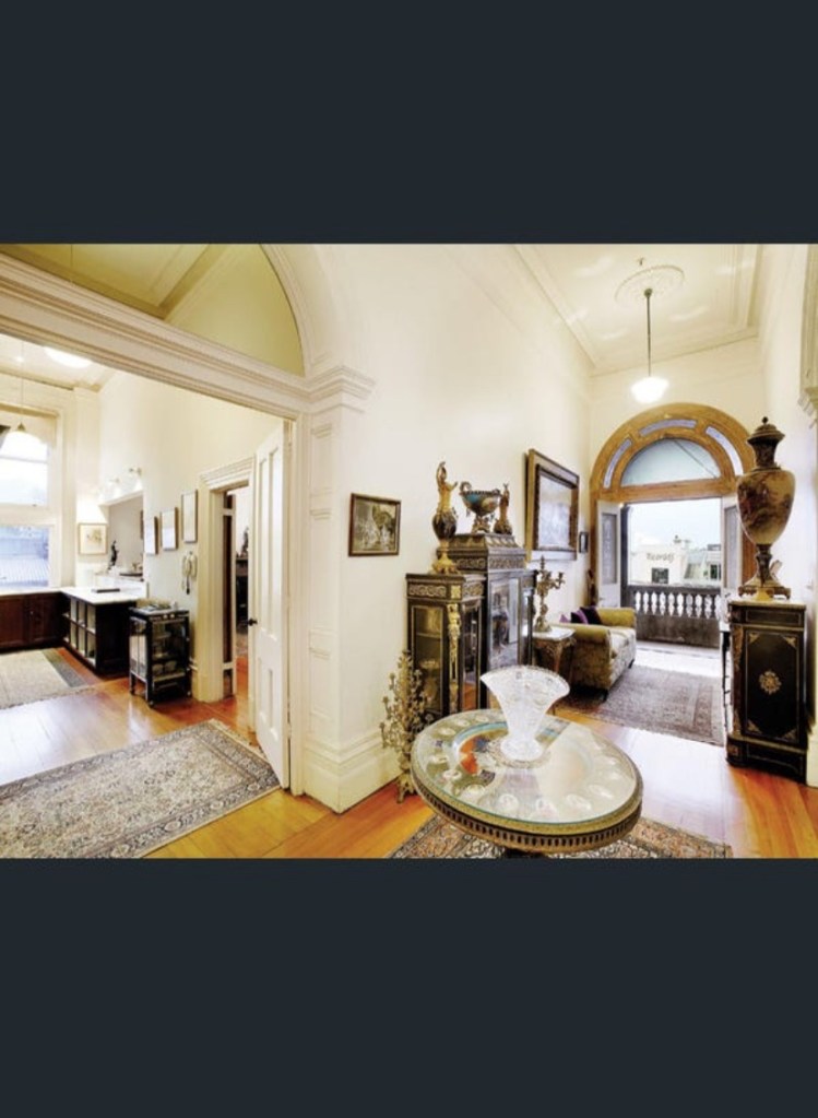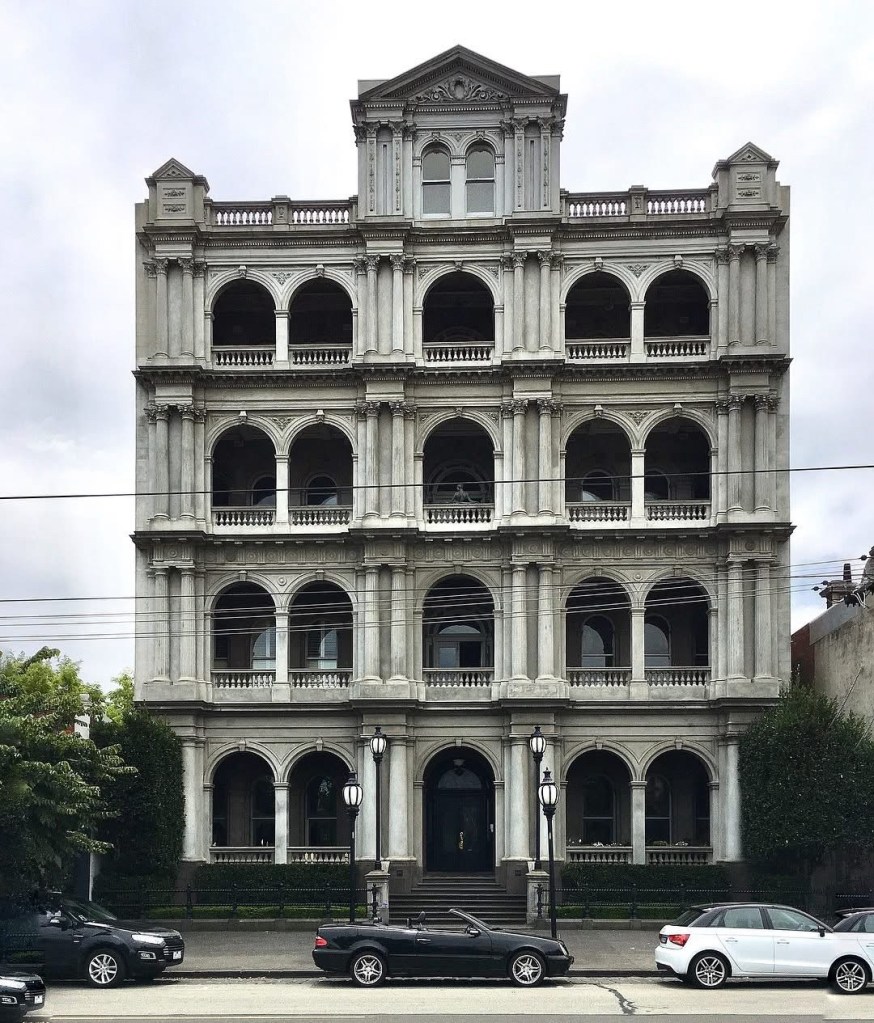 Former Albert Park Coffee Palace, built 1887-1889 in Bridport Street as an alcohol free hotel with 40 rooms and big lounge and dining rooms. After the Windsor it’s the most palatial one remaining. It was designed by my favourite High Victorian architect, #WSLaw, and has a similar top pavilion to his Benvenuta in Carlton (now Medley Hall, last pic). Unusual to be all arcaded verandahs like this, especially since it faces south, but it is splendid, and totally dominates the area. Renamed the Biltmore Private Hotel in 1931, in 1950 it became a nurses hostel, then a hotel again in 1966, then office by the 80s, becoming (very desirable) apartments in the 90s. Lobby looks intact. Very nice flat on an upper floor, looks like lots of original details, might have been an upper lounge or billiard room? But 1887 descriptions don’t imply anything like that. Then a huge flat top floor, with the tower included. A biggish thing was proposed next door in 2023, I’m told mid last year VCAT ordered it to be a floor lower.