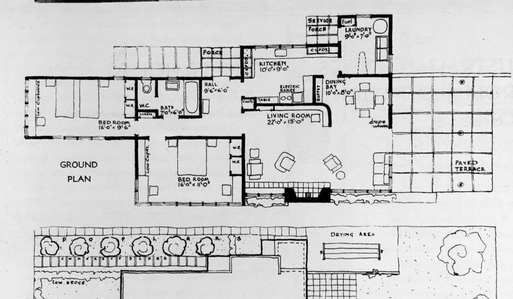 Got my copy of ‘Winning Homes’, the result of Tim Reeves’ PhD on Australian ‘ideal’ home competitions – and interesting to see that many of the winners of the 1934 Victorian Centenary Homes Exhibition held at Myer (!) were ‘Modern’, a style which was rarely actually built in the 30s. None exactly open planning, but the living and dining spaces merge in the smaller houses. 1. Concrete House for £1200 pounds won by Donald Ward; 2. 4th place for a £1550 house by Ballantyne & Wilson; 3. 2nd place same category also B&W; 4. 2nd place for an asbestos cement house was by #MewtonAndGrounds. They did actually build a few houses in this mode, but only ‘The Ship’ in Mt Eliza from 1937 survives, and that’s attributed to Grounds alone; they also did a house in Aphrasia Street Geelong in 1934 (2nd last pic, demolished) completed about the same time as the competition that looks like the first design by Ward.