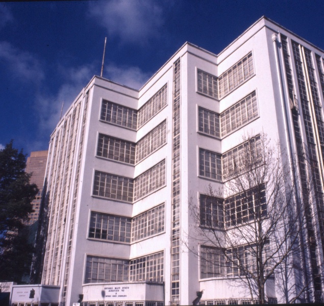 The Agriculture Department once stood in #StAndrewsPlace #EastMelbourne. Built in 1948-51, it was designed by my fave #PercyEverett, Public Works Chief Architect, in his signature dynamic modern form, in this case stepped to suit the angled site with opposing horizontals and verticals – very retro for the date but very stylish ! I was shocked when #heritagevictoria said it was ok to demolish in 1996, partly because it was only accidentally listed as part of the precinct, and partly because the state government’s own heritage buildings section manager said it was poorly designed (too much glass apparently) and it interrupted the 19thC qualities of the precinct, which they were going to restore. There’s now a lot of garden there, and they did recreate the 1907 classical rear elevation of 3 Treasury Place, but it’s not that interesting. Pics 2-6 are scans of my own slides using a free app, not that great but you get the picture. First pic is from 1951, last pic current streetview.