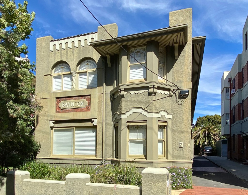 Im posting this block of flats at the bay end of Robe Street St Kilda not because of its architectural qualities, though it is a very nice combo of Arts & Crafts and Spanish, but because of a memory it evokes – waaay bank in the mid 80s when I was a lad going to gay night at Inflation on Wednesdays (free wine!), one night after closing at 1am I was with a friend on the footpath and we got invited by a random girl back to her place / the place she was house sitting with some others, and it was here ! Top floor front. I remember thinking ‘St Kilda, how risqué’, closely followed by ‘this place is enormous and delightful, I didnt know flats could be like this’, revealing my suburban upbringing. Nothing terribly exciting happened that night, we just sat around talking till dawn. One bloke was Scottish and kept talking about his new ‘coo-ker’, ie stove, and we all thought his accent was hilarious. Never saw any of them again. Looking at real estate pics, it is indeed very nice inside, though not as big as my memory made it. And it’s just possible it was actually next door, which is similar, last two pics. As to its history, all I can say is the earliest mention is 1930, so perhaps built 1929, just before the depression. I also found that the Michael family lived there in 1932, whose infant son had his ‘beriss-milah’ (circumcision) there, after which the guests had a ‘dainty repast’, Mrs Purvis of Koo Wee Rup stayed there after a period in hospital in 1937, and in the 1940s the Rosenwax family were in residence.