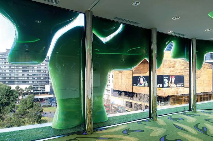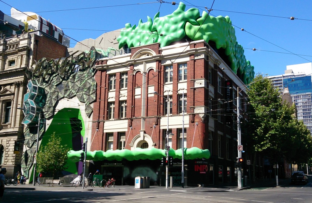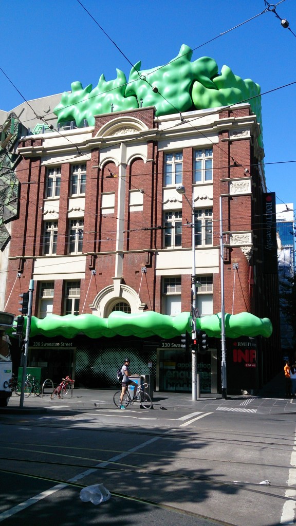 The RMIT Green Brain that I photographed in 2013; I quite like it, sort of like a huge sculpture that sits on top of the building, though normally I’d say no additions or keep them low and simple. Could do without the green cloud verandah though. It was designed by @armarchitecture, completed in 2010, and it’s an extension of ideas from their Storey Hall additions next door from 1995, where the facade used Penrose tiles (two shapes that fit together in an infinite variety of ways), but here they’re 3D and smoothed out – I think basically so it could look a bit like a brain, which I only just now realise is something University’s shape, ha ! It’s also the green from the hall, representing its Irish and feminist histories. The Edwardian factory it’s on is often said to have been built for the Singer Sewing Machine Co, but as far as I can tell they weren’t here till the 1950s; it was actually built for Welch Margetson, a British shirt making company, so there were sewing machines in it I guess, and clearly one of the many industries that employed mainly women. The architect was Leonard J Flannagan, better known those big arched tram depots in the eastern burbs from around the same time. It’s now one of the few reminders that this end of Swanston Street was once largely industrial / warehouse buildings. Though not outstanding architecturally, other similar places got heritage listed in the last review – but rather oddly not this one, not even in the list of rejected. Inside pic ARM, 1984 pic city of Melb libraries, clippings The Leader, 20 Dec 1913.