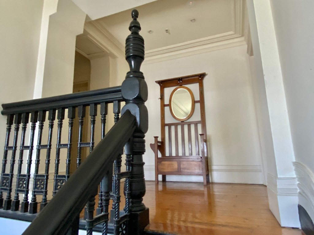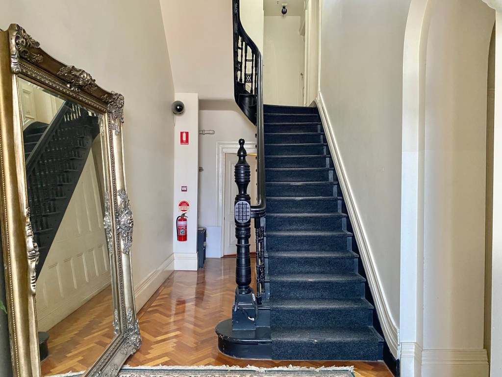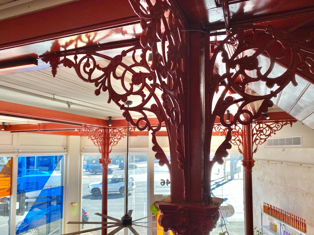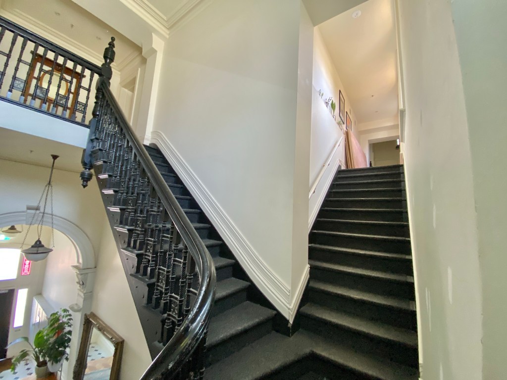 Who hasn’t noticed this impressive shop building on the crest of St Kilda Road, cnr Alma, with that chandelier shop that was always having a sale ? Well it closed a year ago, and @studioy.com.au bought it, and director Yaron kindly asked me in to have a look – and it’s just as impressive inside. The ceilings are at least 6m high, supported by cast iron columns, complete with lace panels, and a half a stair to nowhere. Room for a mezzanine, and there’s also a basement, with hefty columns and wrought iron beams. The shopfront (and two others) and even the door are original too. Round the side is a generous entry hall to what was a 10 room house above and behind the corner shop, converted to flats in the 90s (with an additional floor you can barely see), and there’s stairs everywhere, including newer ones inside the top corner flat that go up to the roof – quite a view ! (Thanks to Trish and Trent for letting us in). The whole thing was built in 1886 for Alex Macadam, who ran his grocery business from one of the other shops, but found his investment soured quickly; the shops were all filled in 1890, the corner one as Hewitt’s crockery and glassware (I think), but by 1895 only his grocery remained, and the corner shop wasn’t occupied again until about WW1. Meanwhile the house was occupied by Mr Harricks, physician, who appears to have been the St Kilda coroner at the time, joined by 1895 by Dr McAdam -they might have used the ground floor on Alma Road as a surgery (all that comes from directories and Trove). I found one old pic on Facebook from 1967, when what was once a narrow shopping strip called High Street was being bulldozed into the wide St Kilda Road it is now. It was an antique shop then, Franzi & Filcock, and I was told the chandelier shop started 40 years ago, run by the sister of the owner of the whole building, who was a property developer (I didn’t quite catch the name). Pic 2 is streetview.