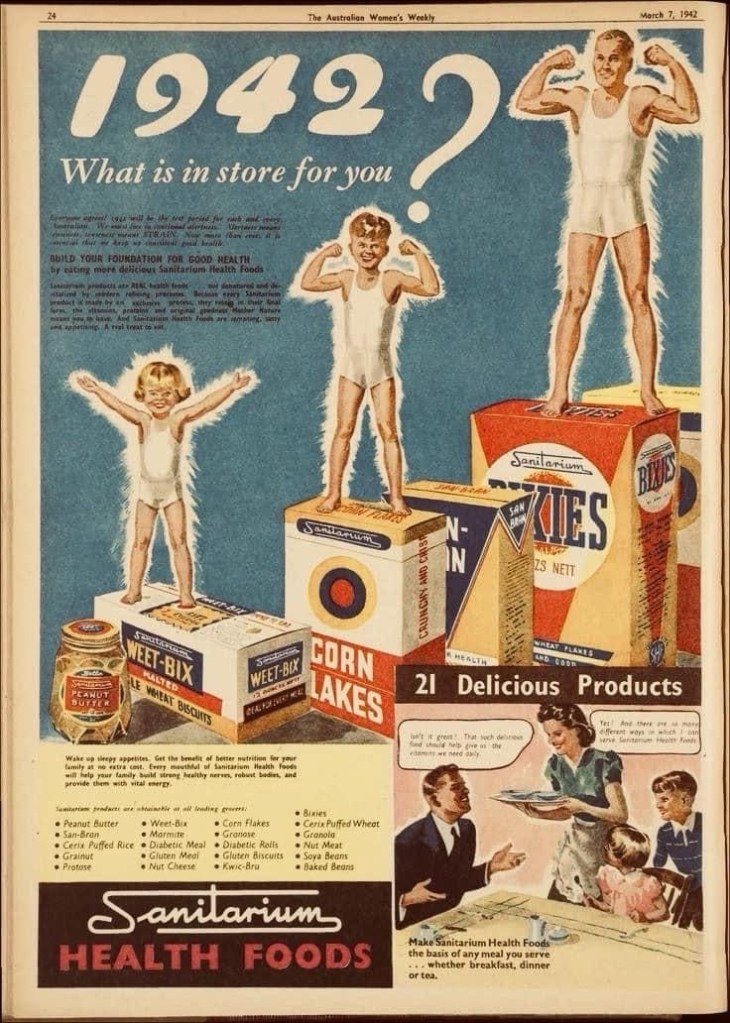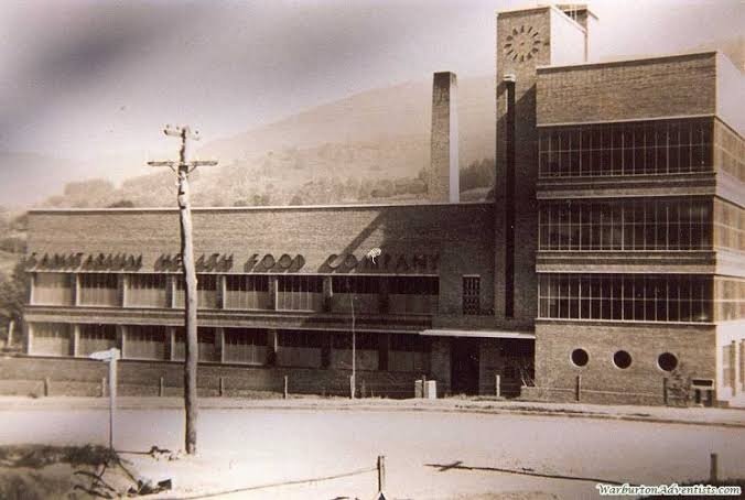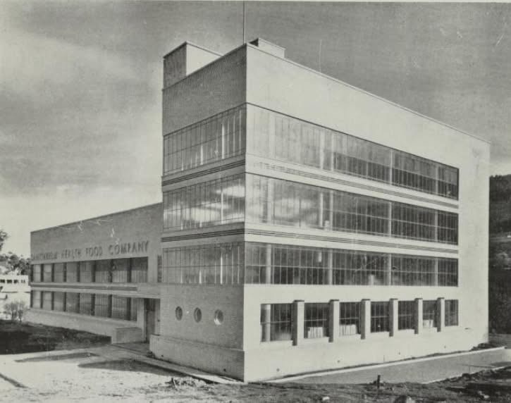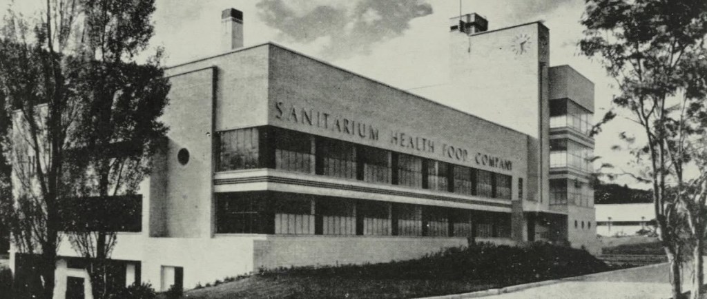 The Sanitarium Factory in Warburton was in the news today, with a new redevelopment application coming up. This great Modernist cream brick landmark was completed in early 1938 by the Seventh Day Adventists to produce pure healthy products like Weet-Bix (one of my faves), which they did until 1997, when it was sold to Sydney based Garry Crockett who clearly loves it, but somehow hasn’t managed to make his plans for wellness/conference centre/hotel go ahead. Next door is the similar Signs Publishing Co. pics 9,10, built at the same time, which is still owned by the Adventists and still going. I can see now that the baby blue panels were originally clear glass, and the window frames on the factory were probably red, like the Signs building.