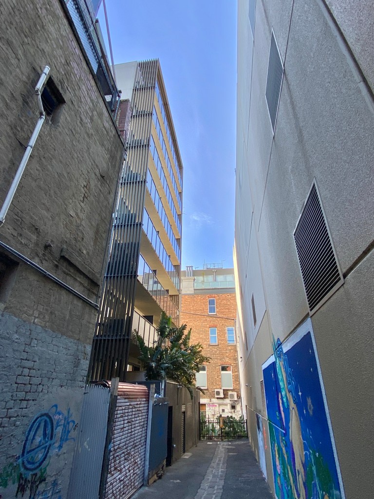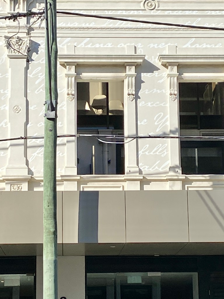 Truly appalling development in Grey Street St Kilda, completed in 2017, when I was outraged to discover it wasn’t just a case of facadism, but in fact they were allowed to demolish the whole lot, then rebuild the Victorian facade (probably because they were allowed to keep only the front wall, then it became unstable). And what’s more they were allowed to leave the windows as gaps with two levels behind, then also project forward above them so they become quite overwhelmed anyway, and on top of that paint poetry on the walls and call it ‘Ode’. 😬 Not helped by the fact that next door has remained vacant, or the vaguely 80s ‘graffiti art’ was then applied, itself now graffitied. And just now looking at the apartments, the lower floors include bedrooms with no window or a small one into a light court, and the rear ones look only across a narrow lane. Ok, yes more density, but such low amenity should not be acceptable. Though I suppose they’ll stay ‘affordable’ for some time. I don’t know who the architects were, and I hope the #cityofportphllip regrets the permit.