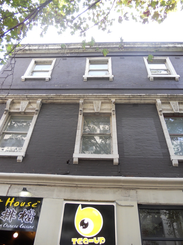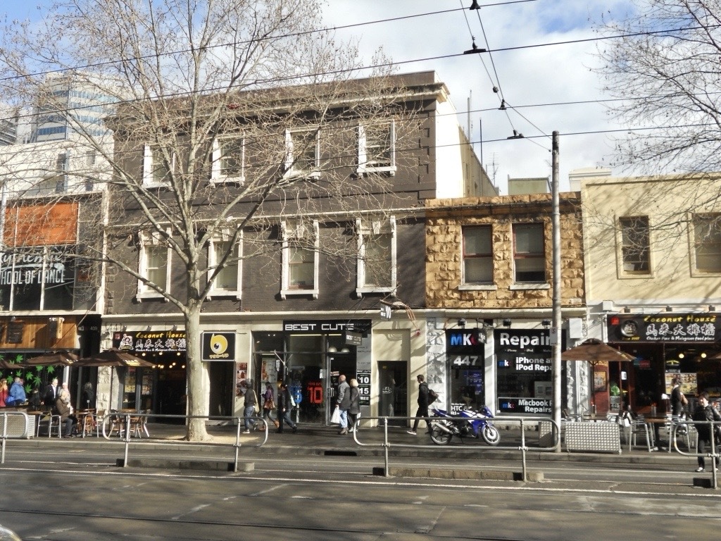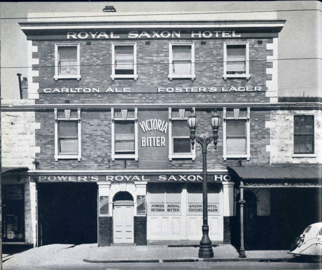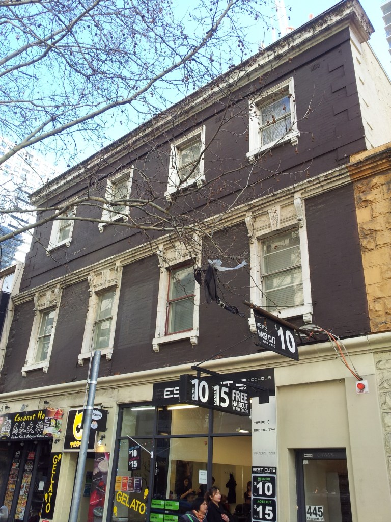 Royal Saxon Hotel, 441 Elizabeth Street, built 1858, an early survivor near the market, built of face bricks (now painted), unusual skinny detailing, and a rough facade bluestone bit to one side. It’s the site of a proposed high rise development now up for sale with a (not bad) permit in place. Originally in 2012 it was proposed to be facaded, with the tower setback only 6m, but former Minister Matthew Guy actually rejected it ! New plans keep almost the entire 18m deep 1858 section, restore the facade (as shown in the c1950 image) with the tower setback 10m, (which involves a bit of cantilevering over the rear). Only problem is that it now includes a nice 1900s building on Franklin Street that gets facaded for a 12 storey wing with minimal setbacks. It was a backpackers for ages but I think closed for the last 10 years at least.