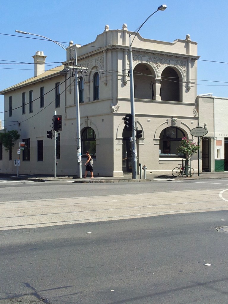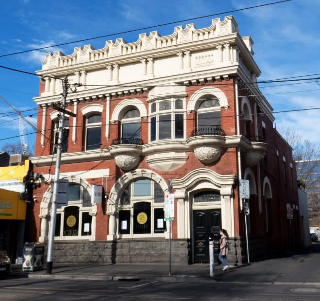 Former #ESandA #bank #nicholsonstreet #northcarlton. Built #1911, architect unknown. A bit #queenannestyle, a bit Romanesque, a bit #edwardianfreestyle, and loads of floral whiplash very Art Nouveau decoration, very unusual for a bank. Would have be mostly red brick under that paint. So the manager who lived upstairs and got that nice inset #verandah/#loggia.