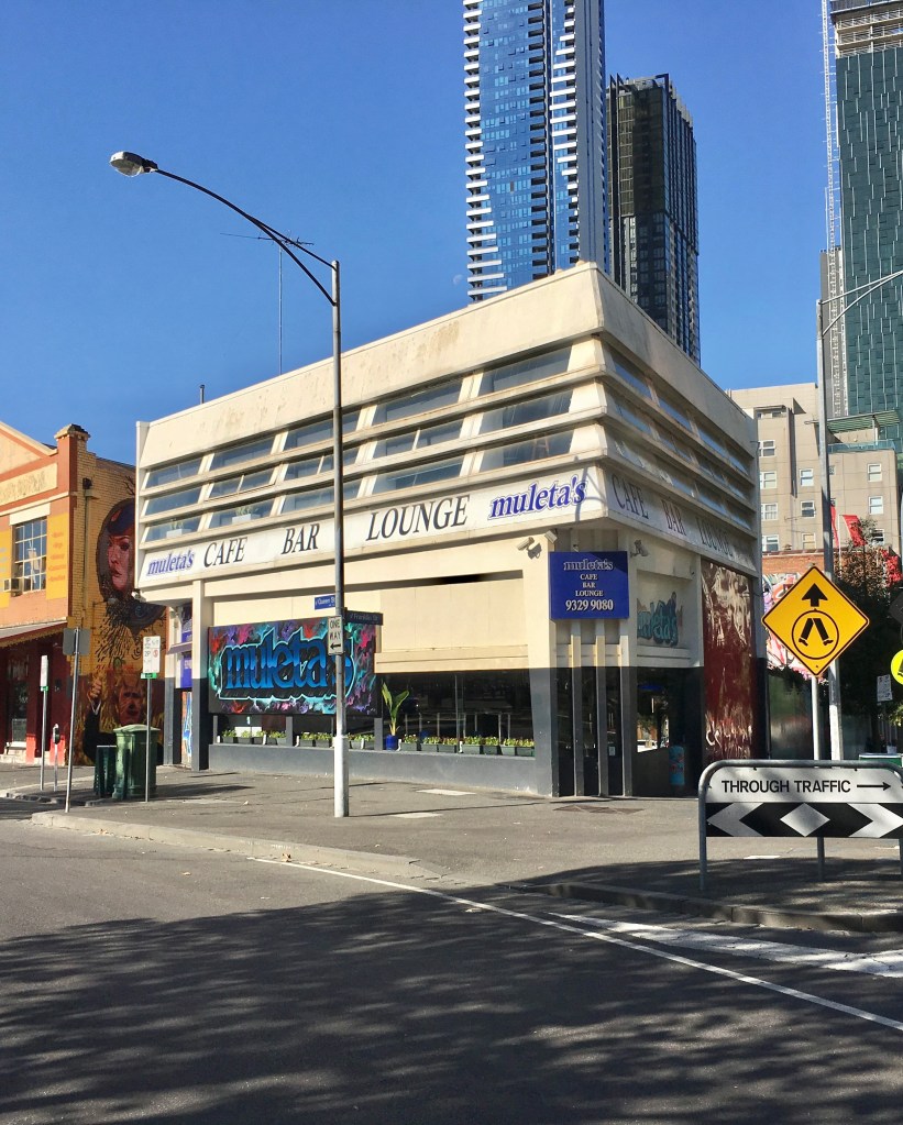Love this crazy little building opposite the Queen Victoria Market, built in 1965 for Globe Tyres. Not sure if maybe one tall floor originally lit through those louvres ? I’m told that by the 90s it was restaurant with a curvy interior by Tom Kovaks, not there as far as I could tell in recent years.