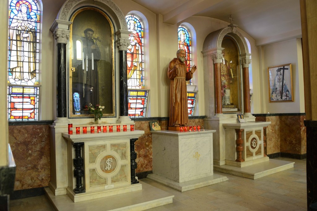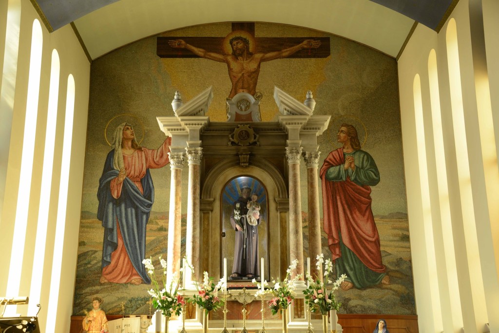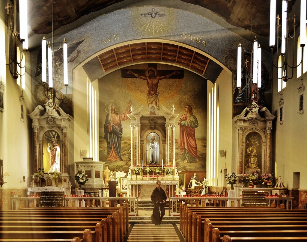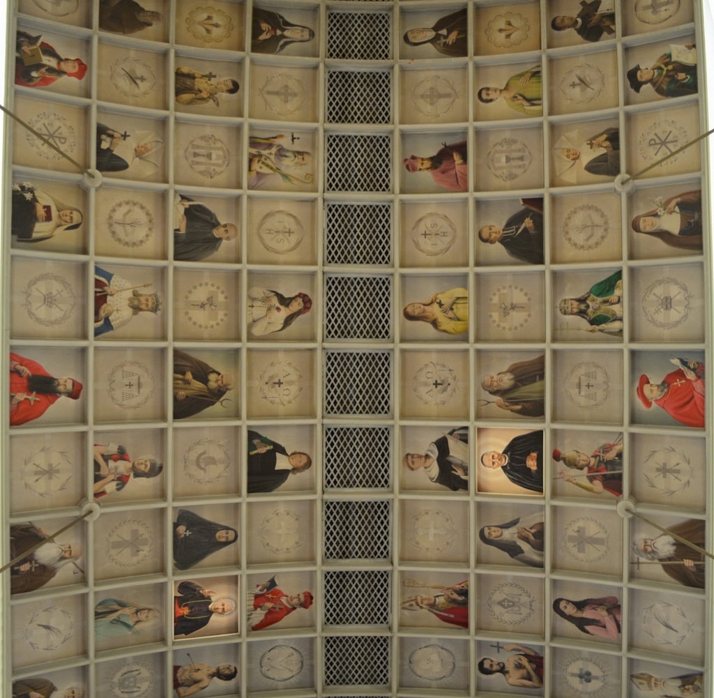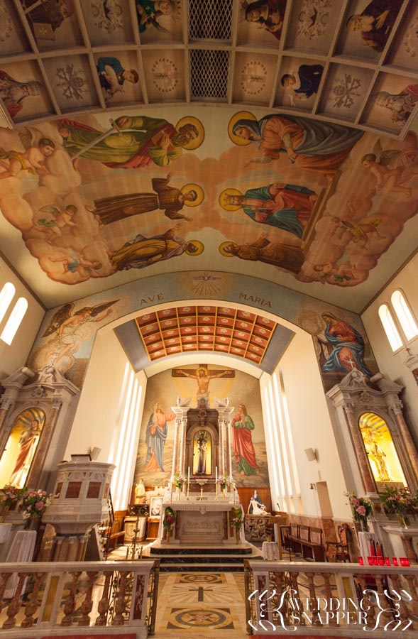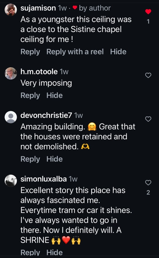 This was always a landmark for me coming into town from Camberwell as a kid – a very grand church on the corner of Power Street and Wallen Road Hawthorn. It’s actually not a church, but a Shrine, dedicated to St Anthony of Padua, patron saint of the lost. It’s one of the last churches built in Melbourne with such traditional features, in a stylised Romanesque, complete with spire, built 1962-69. Inside it’s even more traditional, with a coffered ceiling and lots of classical shrines and altars, most imported from Italy, and a lot of frescoes (not my photos). It’s run by the Capuchins, and very much a pillar of the Italian community, and one of the first purpose built by and for them- it’s a long way from the postwar Italian home of Carlton though, because the church had previously purchased the two Victorian houses on the corner, and gave them to the Capuchins after inviting them to Victoria in 1949. The houses are still there, behind gardens, with the church basically occupying their backyards (!). The architect was Gregore Hirsch, another long story, Romanian Jewish, India in the 40s and converted, here 1948, quite successful but mostly in modern styles. Last thing, the copper top of the spire decayed and was replaced in the early 2010s with a less steep version, and no angel. My photos 2014.