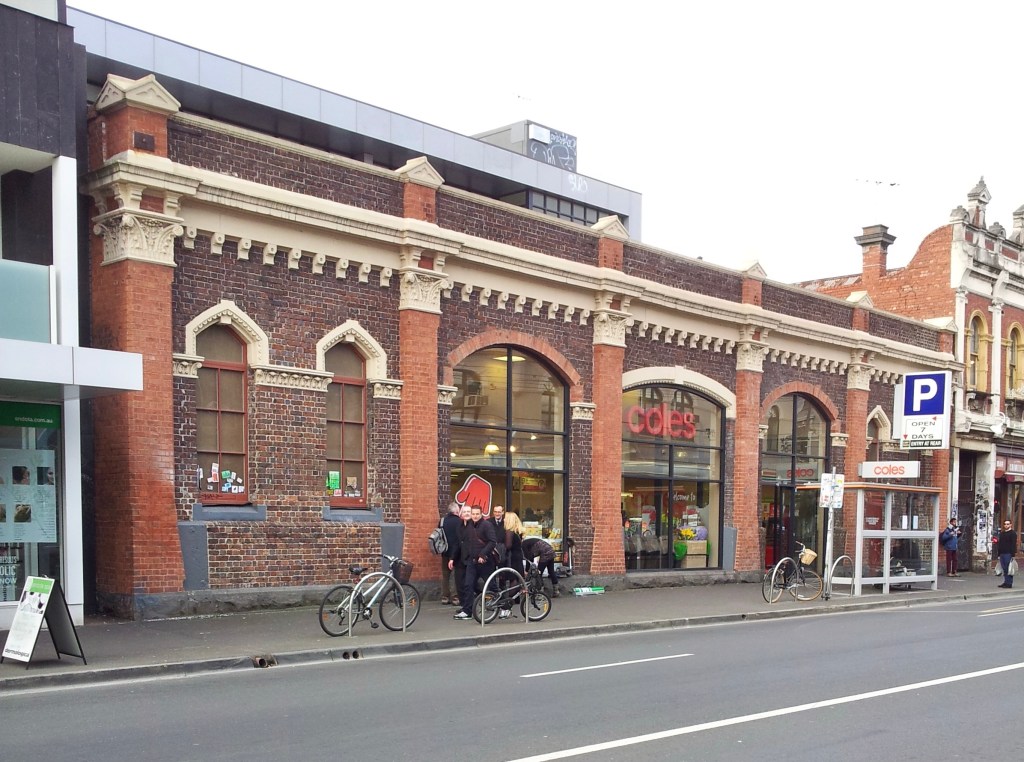 This is my local #coles #supermaket. Housed behind the retained facade of a #cabletram #enginehouse – which once housed giant #steamengine that ran the cables underground that pulled the trams along. It was designed by the tramways architect Alexander Davidson, in an elaborate polychrome Gothic, and built in 1887; it served the Johnston Street route via Lygon Street which was closed in 1939 and replaced with buses.