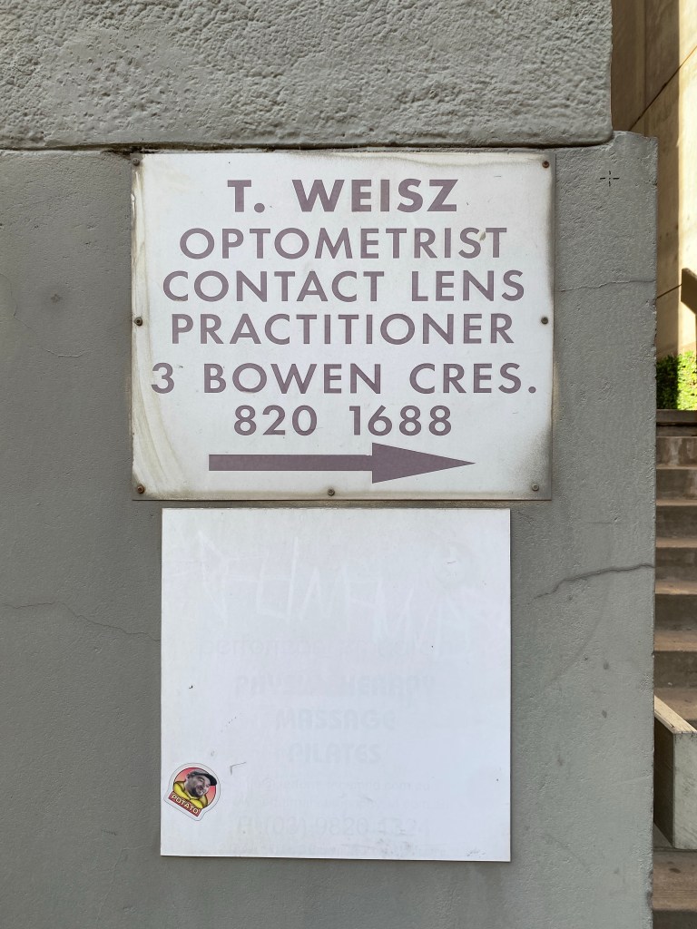 There’s a couple of rather old signs, and possibly original white quartz landscaping. It’s pretty squeezed in, only like 3m setbacks each side. Found a pic of what’s going up next door, boring. B&W pics Wolfgang Sievers, @library_vic.