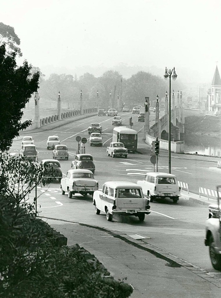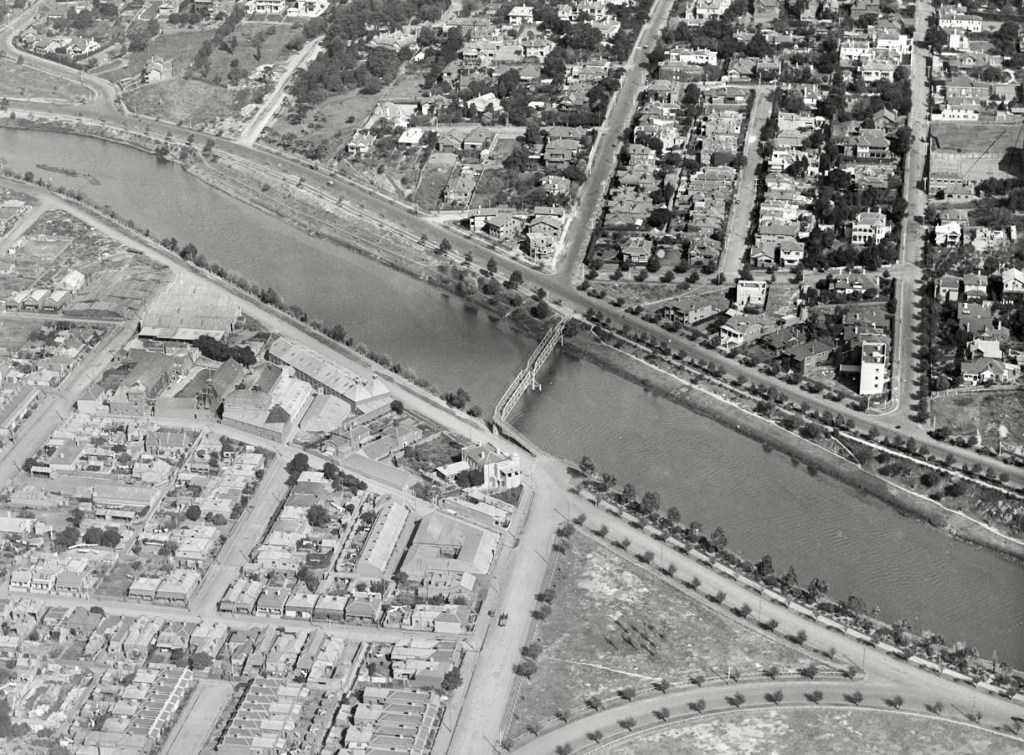 Would you believe Hoddle Street and Punt Road weren’t connected by road until 1938? It must have been so quiet up on the hill. Punt Road got its name from a punt established in 1842, which was joined (or replaced) by a footbridge in 1895. The first photo is 1922, which clearly shows the misalignment (perhaps laid out at different times with no idea that one day they might be joined). As car and truck traffic increased hugely in the next 30 years, a bridge was commissioned, and rather surprisingly the footbridge trusses were reused across the Maribyrnong as a stock bridge near the cattle yards, still there as a footbridge.
