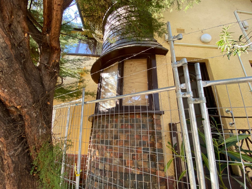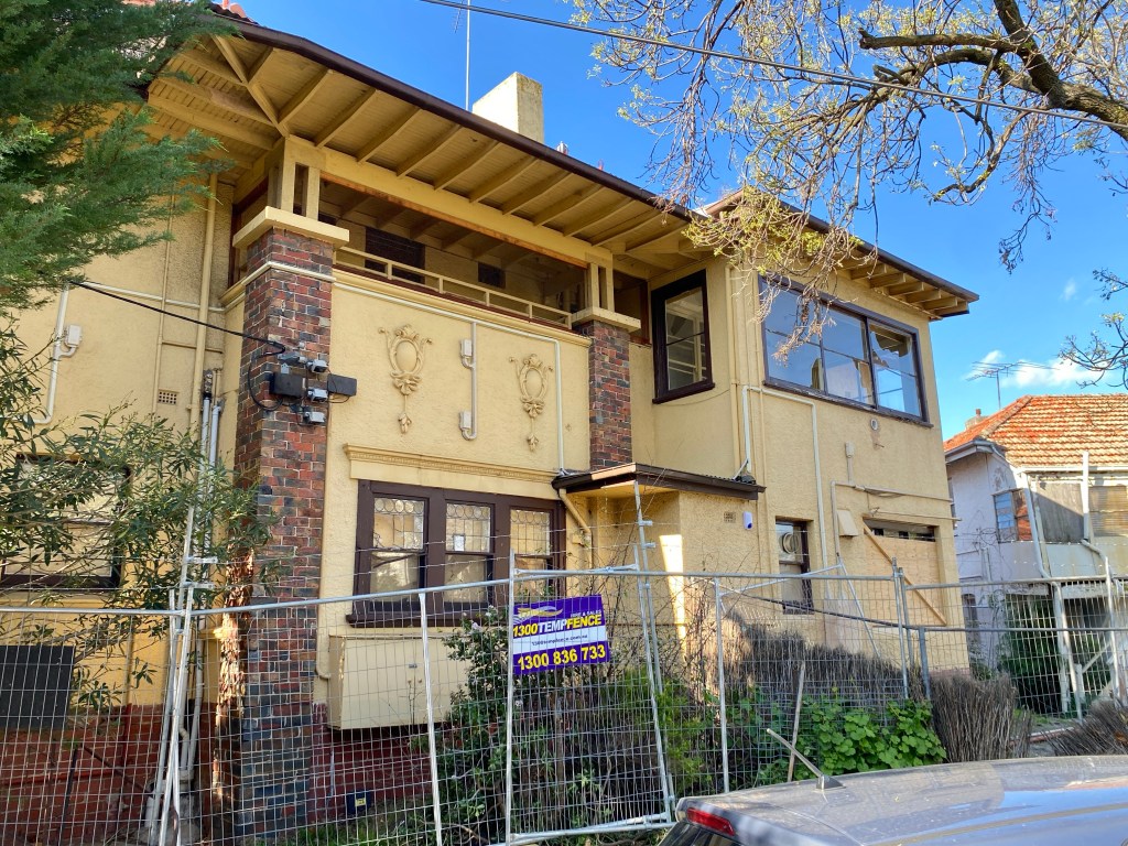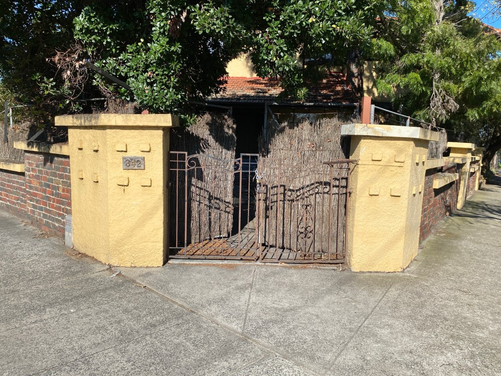 In 1987 it was the first property purchased by the St Kilda Housing Association, now known as Housing First, and seems they sold it in March this year. It also has a decrepit bit out the back, and I guess has had problems with squatters, hence all the fencing.