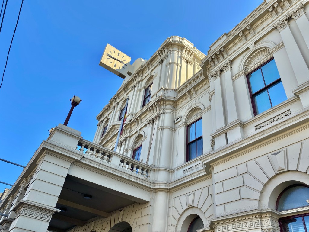 So, it started as just the central section in 1877 in Renaissance Revival style. Then in 1888 they had a competition, won by Sydney Wilson with a design that looked a lot like Collingwood, then being built. But, didn’t happen. Instead in 1908 they added the bit on the right, in matching style.
