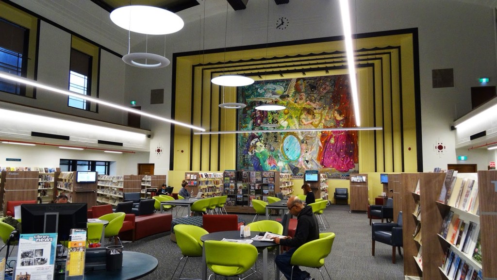 Further alterations were made in 1938, with a new rather severe Art Deco front to the main hall on Dawson Street, and an Art Deco refresh inside (its now the library), and what looks like a new Deco ceiling to the smaller hall. Old pics mainly via @brunswickcommunityhistorygroup.