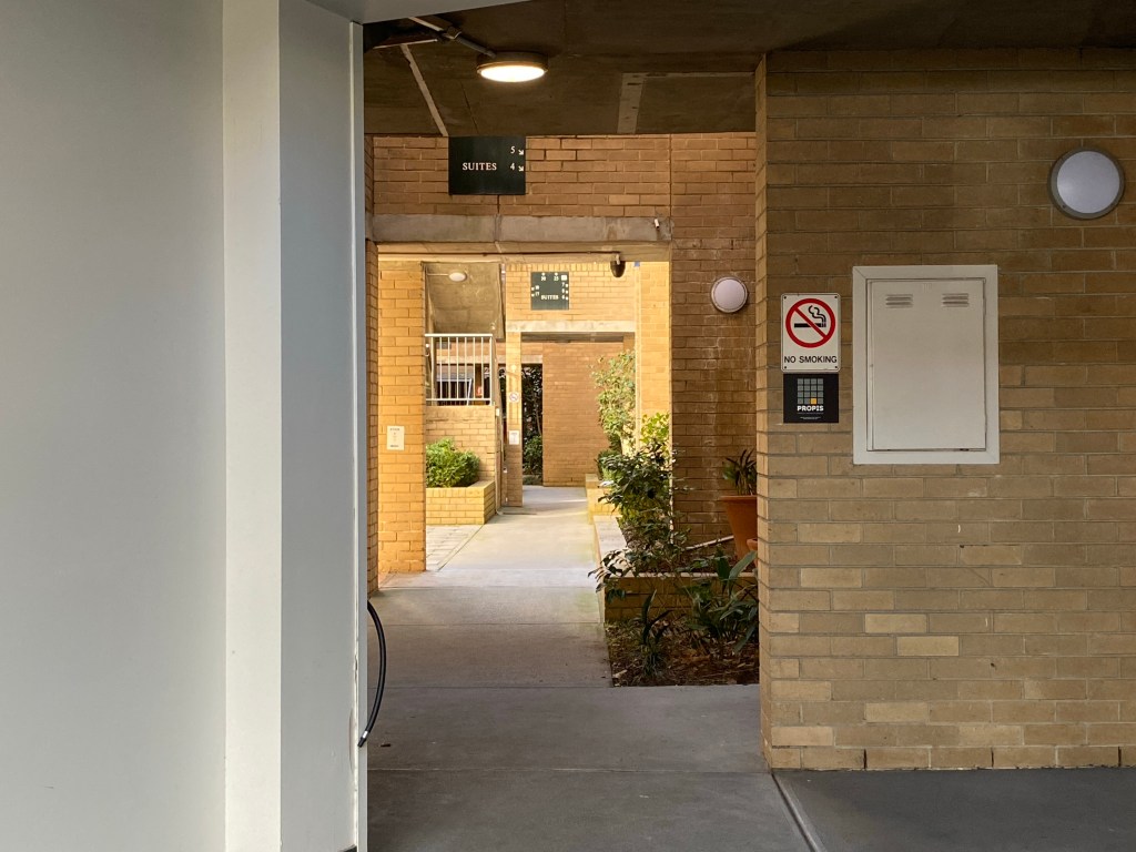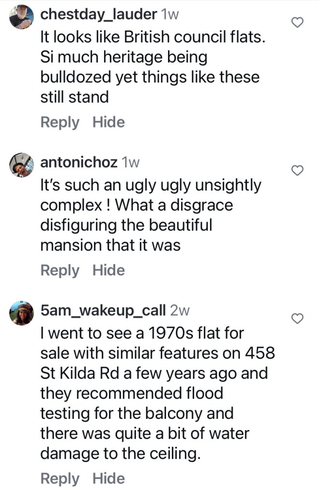 I’ve never liked this development on the edge of Fawkner Park and Commercial Road; the park side looked nice enough in the winter sunshine, but if you look closely it really needs some maintenance. No idea who designed it, but it apparently dates from 1982.