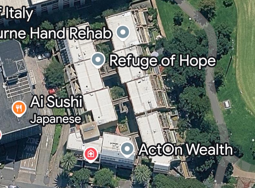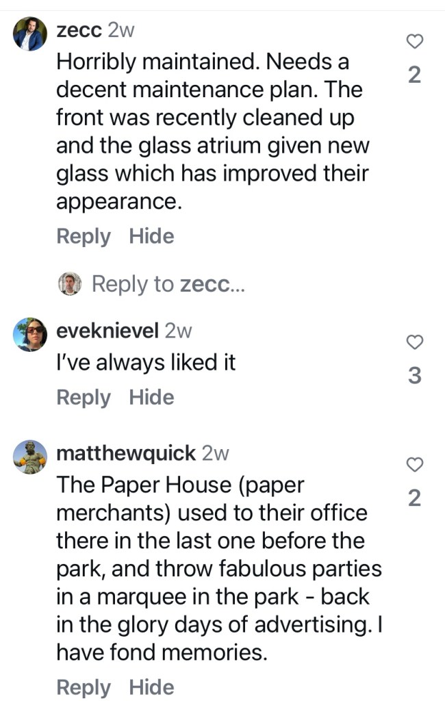 This replacement, called Greenview, appears to be ground /first level office/medical suites, with flats above, in two rows with a courtyard between, bit no lift, or only at one end ? It feels very 70s, with that fawn brick, and the stepped back idea was avant guarde in the late 60s, which I always thought a bit silly because you end up with very deep flats lower down or just odd open space, but yes you do get sunnier balconies.