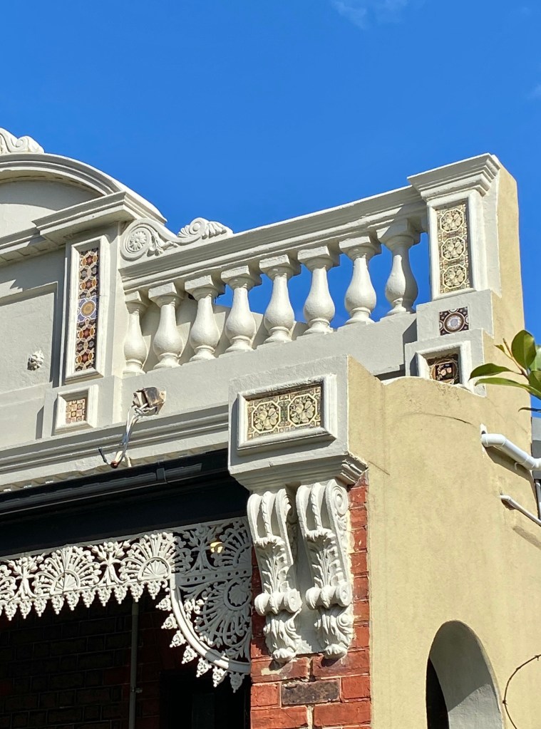 I think I had a breakthrough with my psychologist yesterday, but equally exciting was her new practice – in a very cute terrace with a lot of patterned tiles. I’ve seen them used here and there but not this many in one go. It’s called Ben Bolt Villa, built 1888, near the corner of Balaclava and Kambrook Roads North Caulfield. Amongst the mostly Edwardian and later houses, it’s one of a little cluster of late Victorian houses and shops, which are heritage listed in part because they were mostly developed by the one family, the Wybars, Scottish immigrants who arrived via NZ in 1885, and now I know that history I’ll post the rest one day ! Info from the 2022 heritage study.