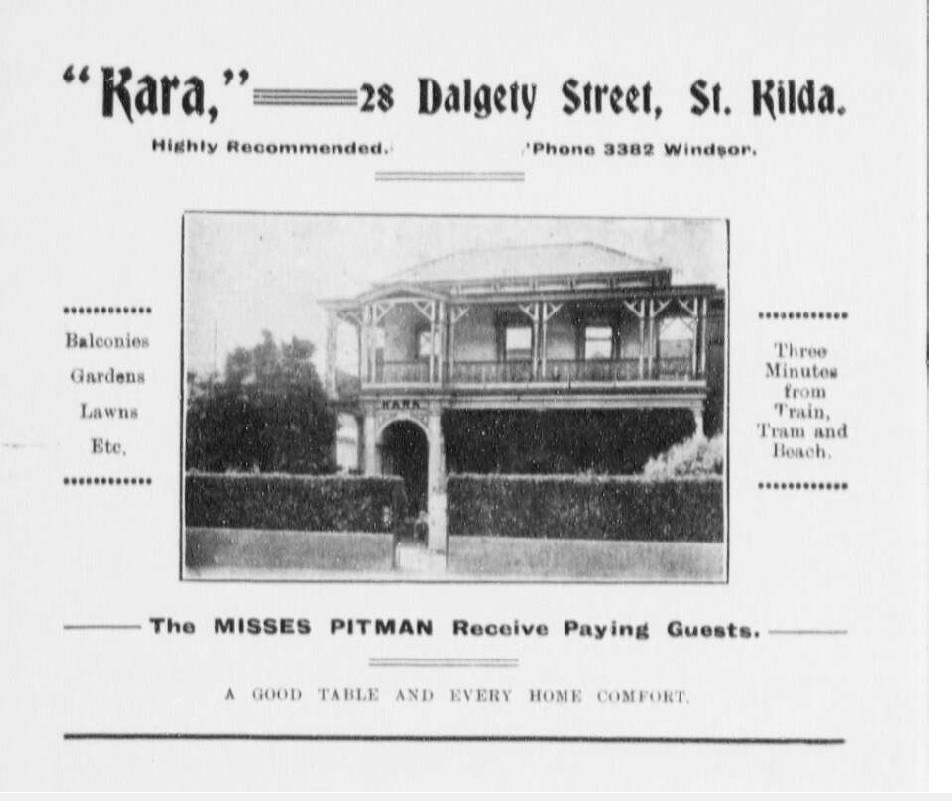 The flats were called Kara Mansions, and I found the Larkins having a baby in 1929, the Bonwicks here in 1940, and Theadora Rose (nee Het Hoff) in 1955. Maybe we can use the name again ? And maybe it’s a reference to Katra-ite Judaism.