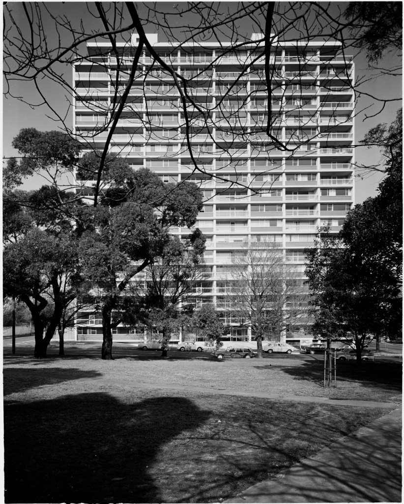 On Domain Road opposite the Botanic Gardens, it was designed by Robin Boyd, largely completed in 1962, and was pretty controversial – at 20 storeys it was by far the tallest apartment tower in Melbourne, and one of the widest and most visible (compare Edgewater Towers in St Kilda, 1961, last pic). All that meant that sales were slow, perhaps a reason why Boyd didn’t get to do anything else as big.