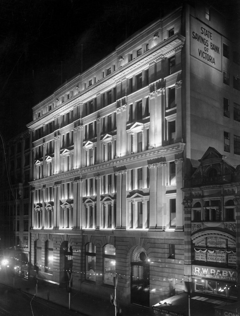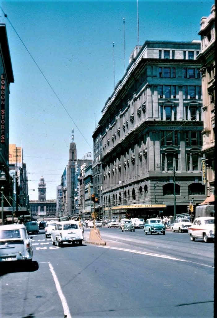The striking HQ of the State Savings Bank of Victoria once dominated the corner of Elizabeth and Bourke, but was demolished in the mid 70s.