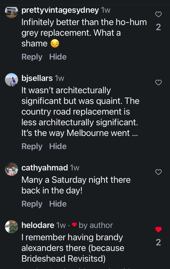 This photo from 1984 popped up Facebook recently – it’s the South Yarra Arms Hotel, which once stood on the corner of Chapel Street and Toorak Road, and gathered lots of comments from people who fondly remember it from the 70s and 80s as a popular pub with live bands and a disco.