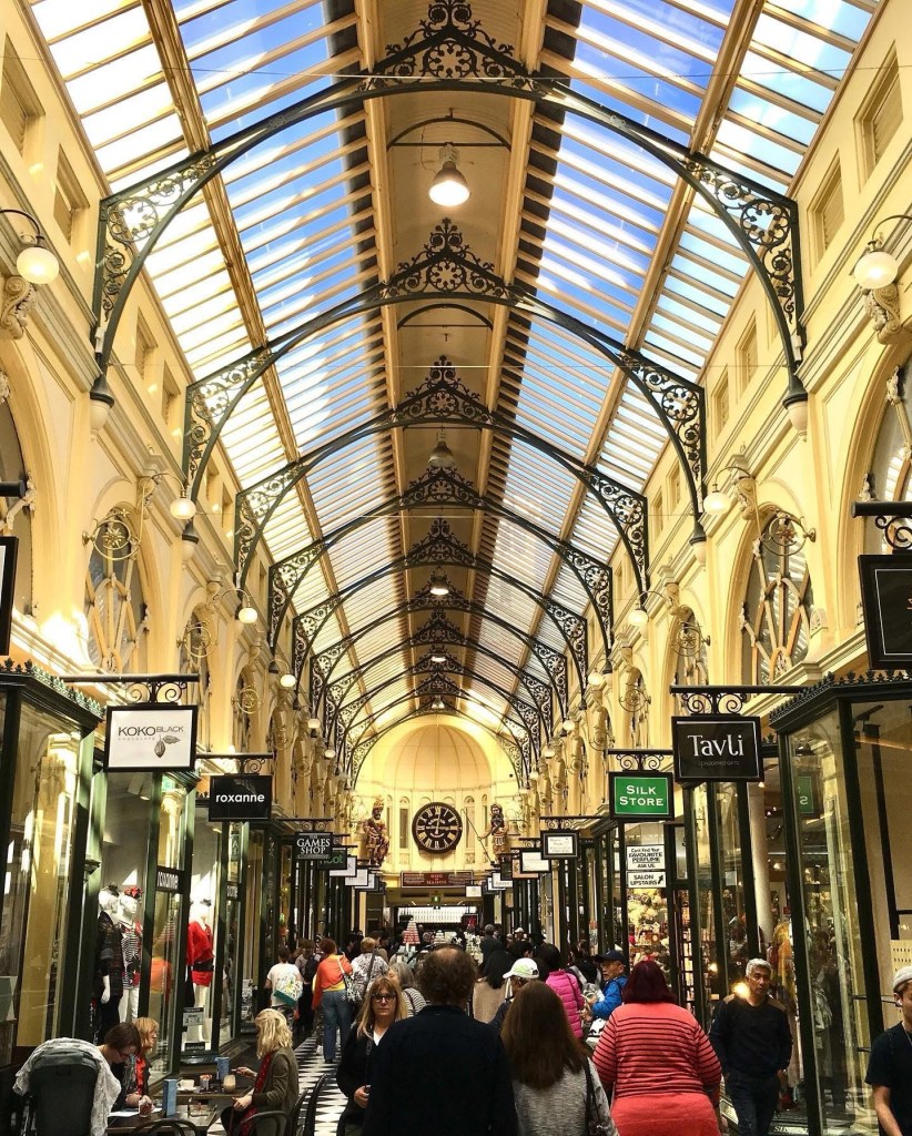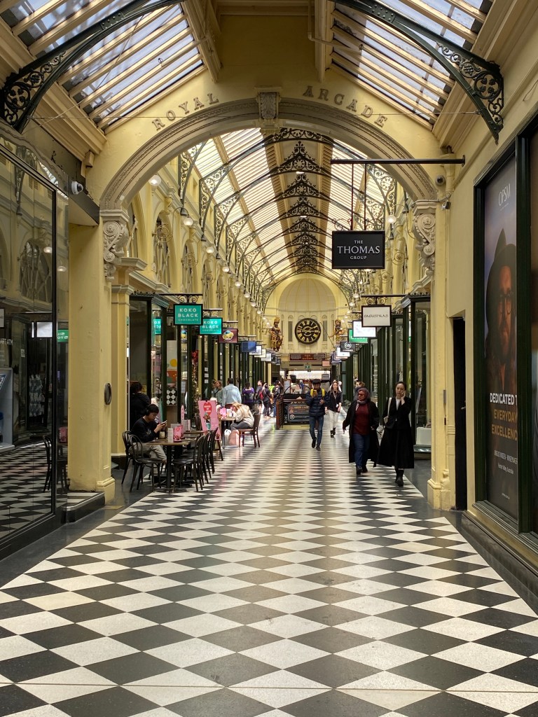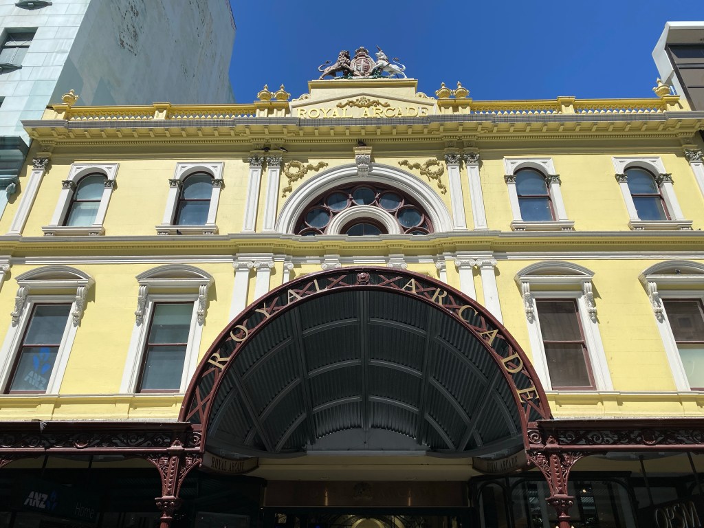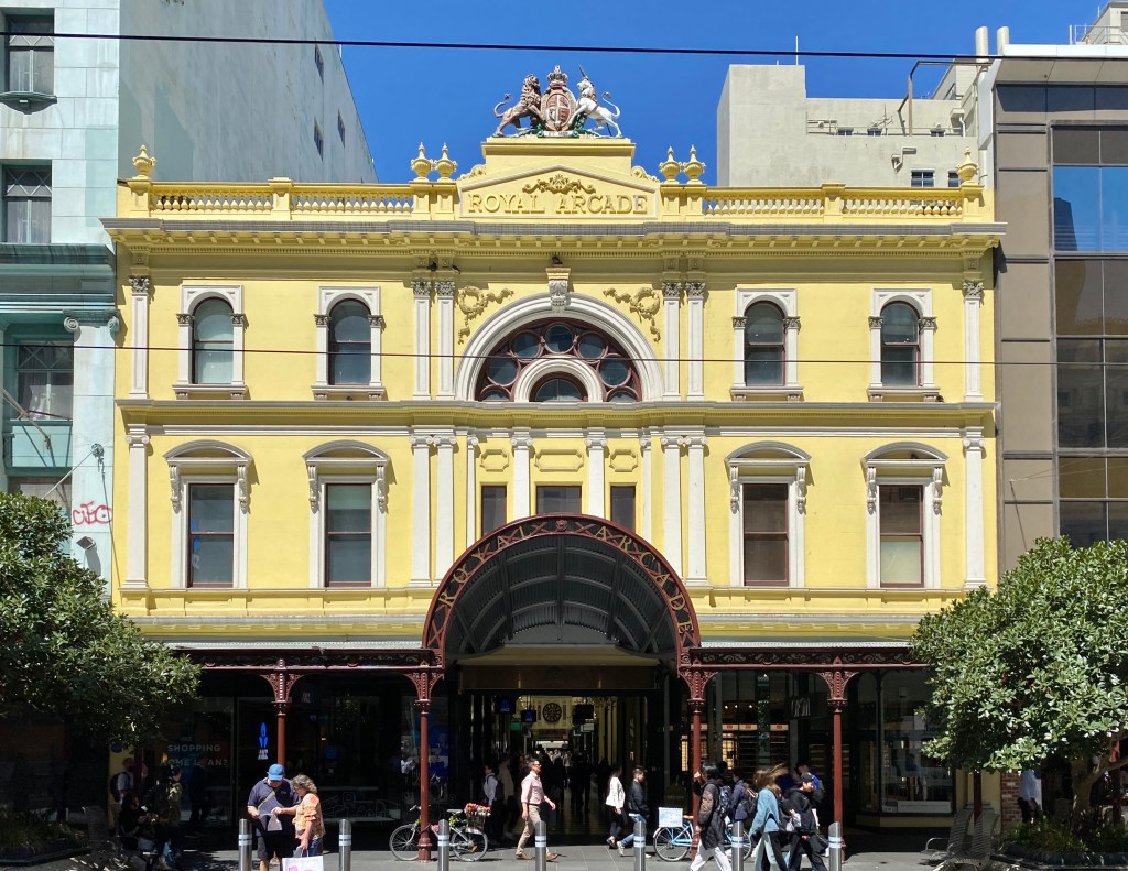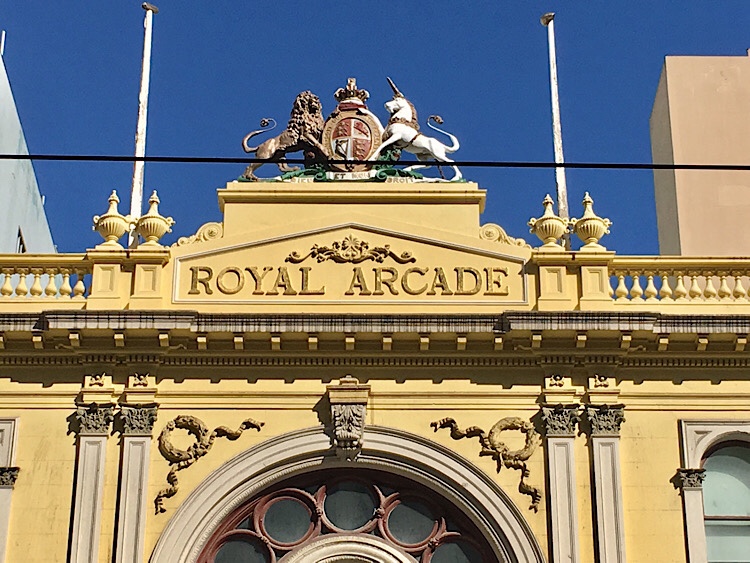 Royal Arcade, Bourke Street. It really is rather splendid, and I quite like the #brightyellow, it’s a bit Regency, though the building is actually mid Victorian. Architect #CharlesWebb won a competition with a rather restrained design, but topped by the Royal Coat of Arms (of course).