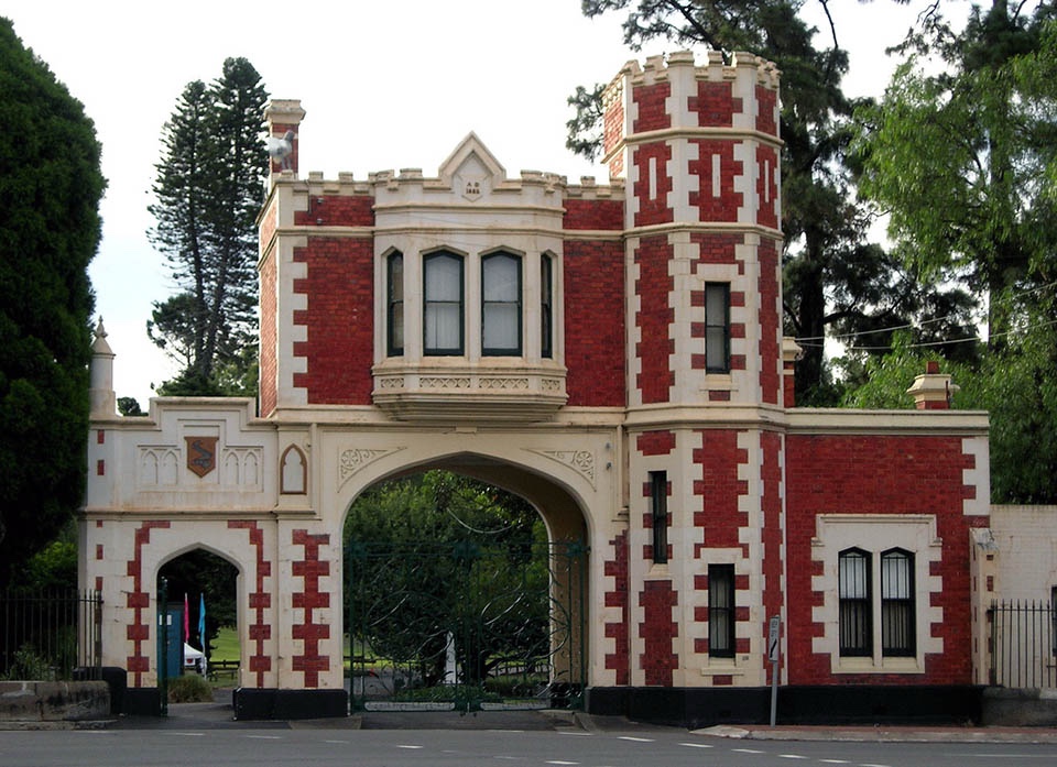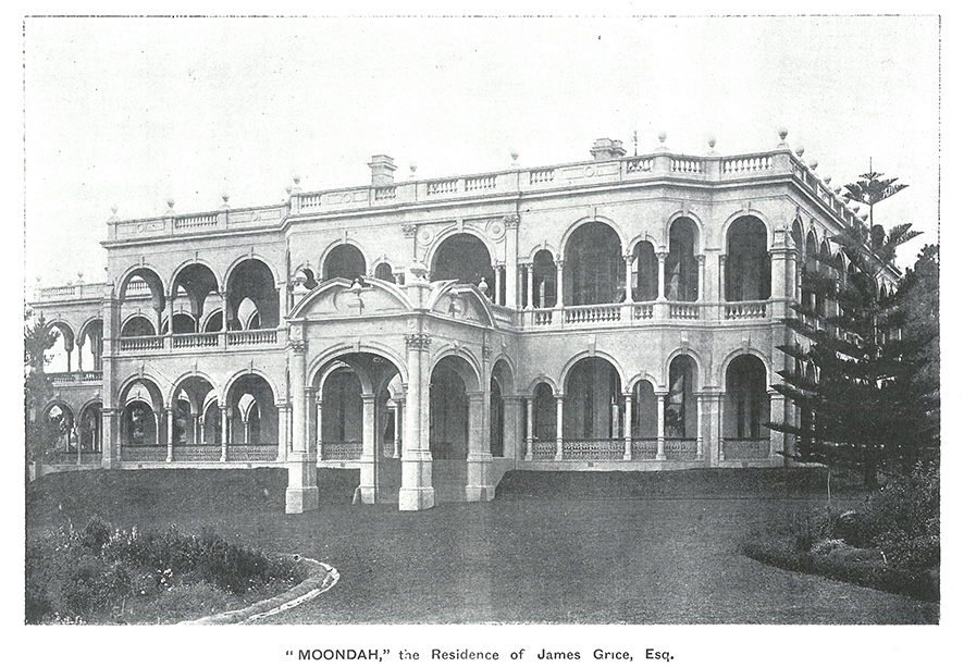I just saw an old photo of this huge pile and thought it was a demolished mansion I hadn’t seen – but actually it’s still there ! It’s Moondah in Mt Eliza, the home of the quite wealthy Richard Grice. The 1860 Gothic house on the adjacent property was built by his father, early colonist businessman Richard Grice (Snr). He died in 1882, so his son had the funds to buy the piece next door and expand it in 1888-90 to 40 rooms – the size of a Toorak mansion.