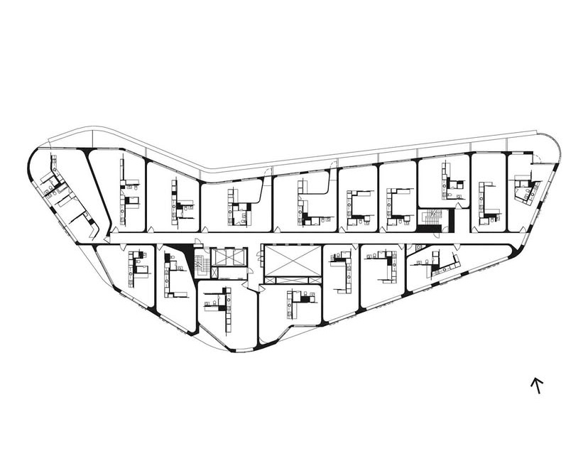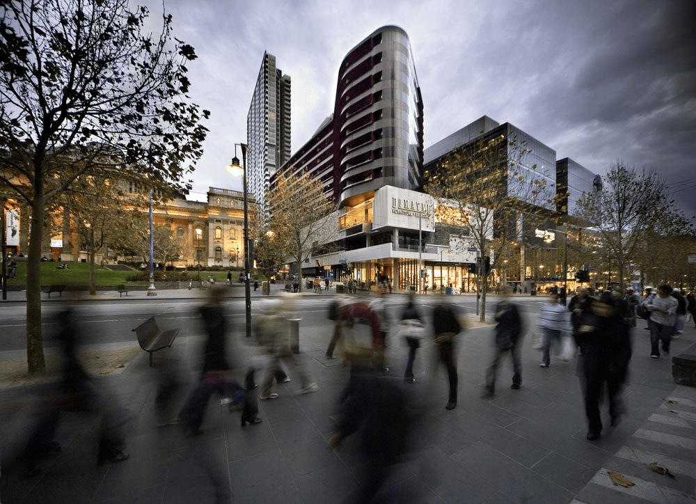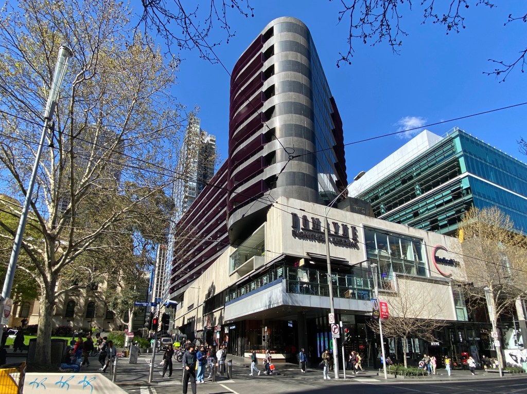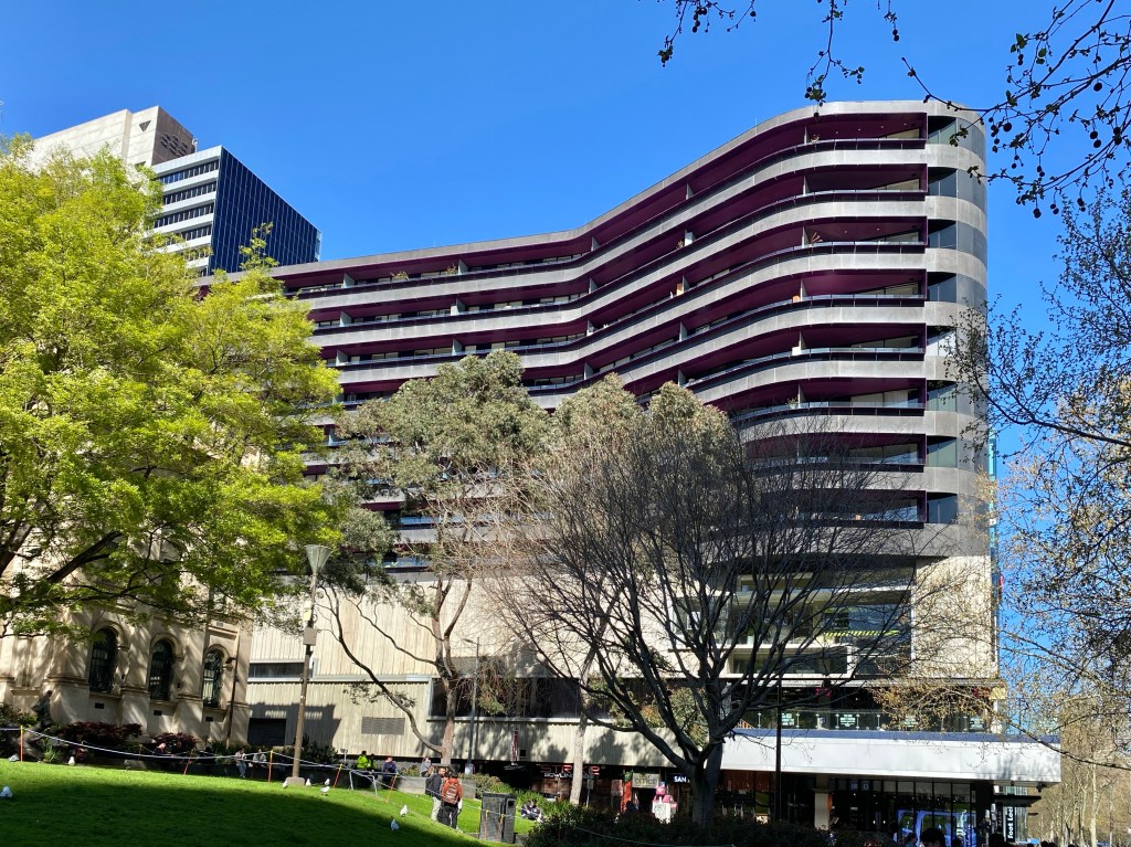 I still quite like this one that faces the forecourt of the State Library; it’s not too big, it’s got a podium that’s the same scale as the library, and there’s some fun shapes and colours. It’s by @mcbridecharlesryan, completed 2004, and the purple is one of their signature colours. I also like that the podium is all retail, they didn’t squeeze yet more flats in. The thing I don’t like is that the curvy upper volume sticks out over the footpaths quite a bit – those parts are balconies but it reads like the whole volume. There’s plenty of space to do it here, and maybe that’s why it was allowed, but many towers doing the same thing in a ‘little’ street would be a bit much….hmm that’s what I said in 2015, just before the 2016 built form controls in the CBD, which mandate a 5m setback above a podium. Another thing that changed that year was the ‘better apartment design guidelines’, which banned bedrooms without windows, or long ‘snorkel’ windows, both of which are used here.