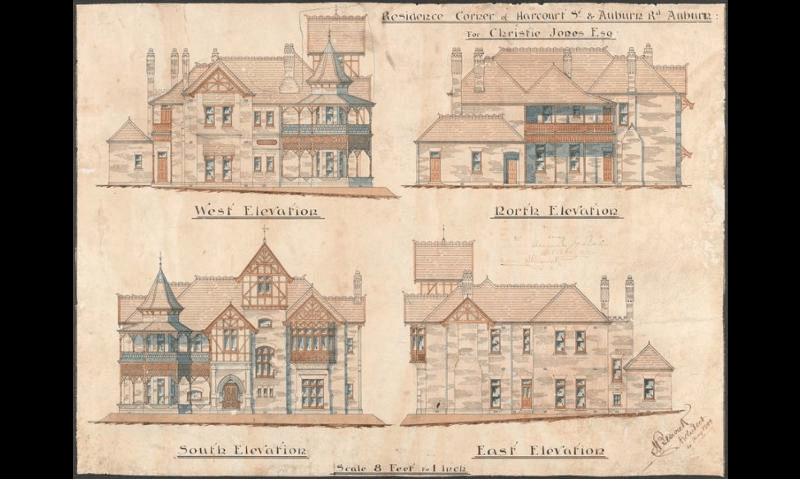 The story is that he built this as a surprise for his wife, but she chose to stay in their earlier house – but the State Library has the original drawing showing it was designed for Mr Christie Jones.