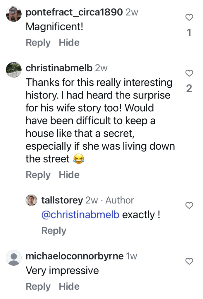 The house was later a Salvation Army hostel and looked pretty sad in the 2nd last 1992 pic. Most pics real estate or heritage listing (it’s on the Register), old pics from the book on Beswicke. Ps I always thought the ‘surprise’ for his wife story unlikely.