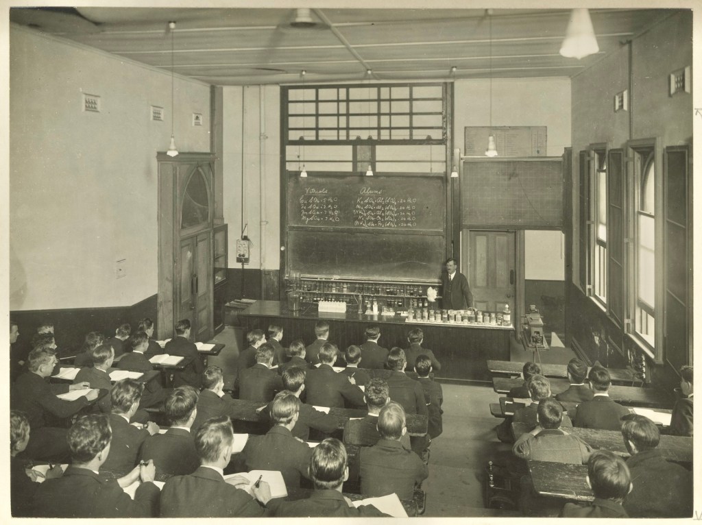 Could only find a few early pics of students, one of a cookery class in 1891, and one of a chemistry class in the 20s.