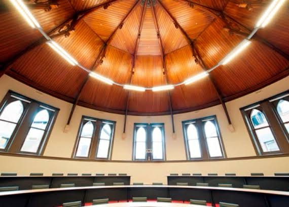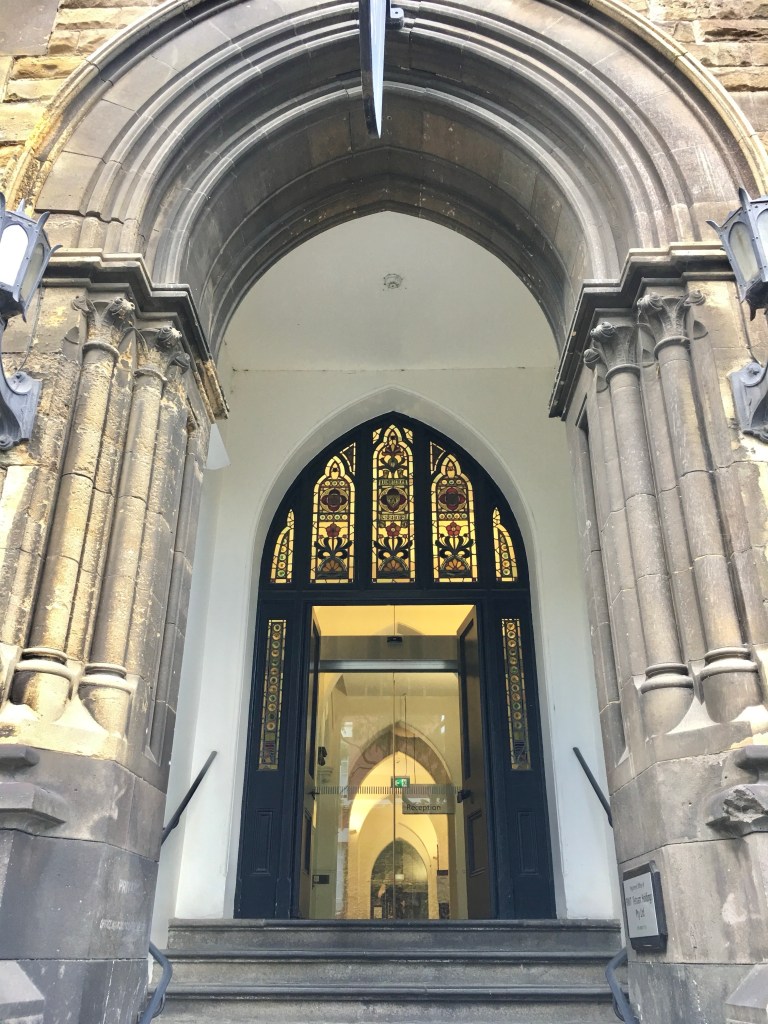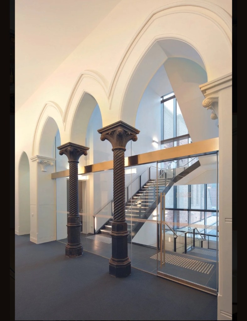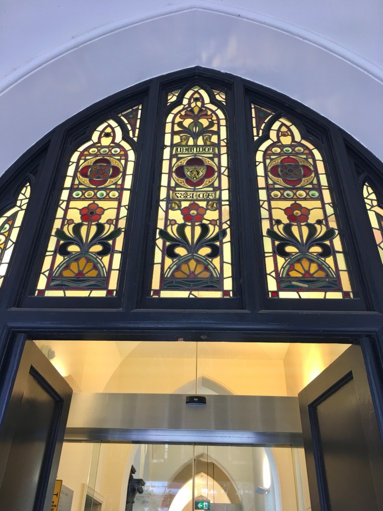 It has a fun rear, with the big semi-circular projection of the original lecture theatre, now with a cafe under. Nice entrance with lead lights too. I didn’t wander much inside, so borrowed pics from @pe_architects who did an extensive refurb in 2010.