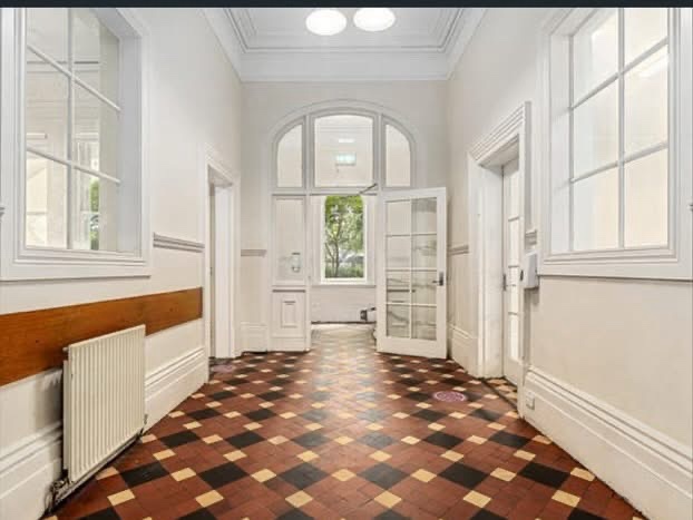 Spotted this in May this year in Alma Road St Kilda, clearly it was a mansion converted into flats. Now it’s up for sale, so we can see a bit inside – it was until recently the Scottsdale Supported Residential Service, I think run by the Uniting Church, so it’s got loads of bedrooms and a communal lounge and dining. The inside looks intact, partly Victorian partly whenever the conversion was.