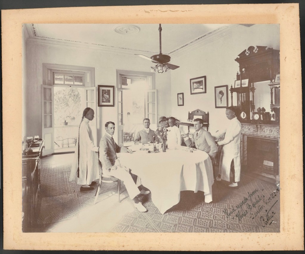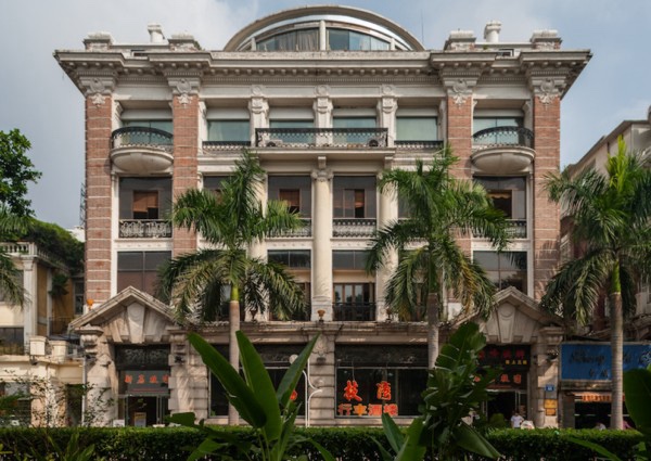 Age 25 he set up in Canton (Guangzhou), and that’s him on the left having tea at the Canton Club in 1906. He designed quite a lot for the expatriates, such as the rather grand Arnhold Karburg bldg of 1907. There was a small island in the river that was for the Westerners called Shameen (now Shamian), hence the name of his house. Only a few years later he built a new one nearby on Malvern Road in a completely different style (sadly demolished in the 1990s for Lauriston). He did a few overtly oriental designs like the house on Punt Road with a Chinese roof.