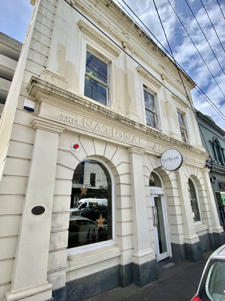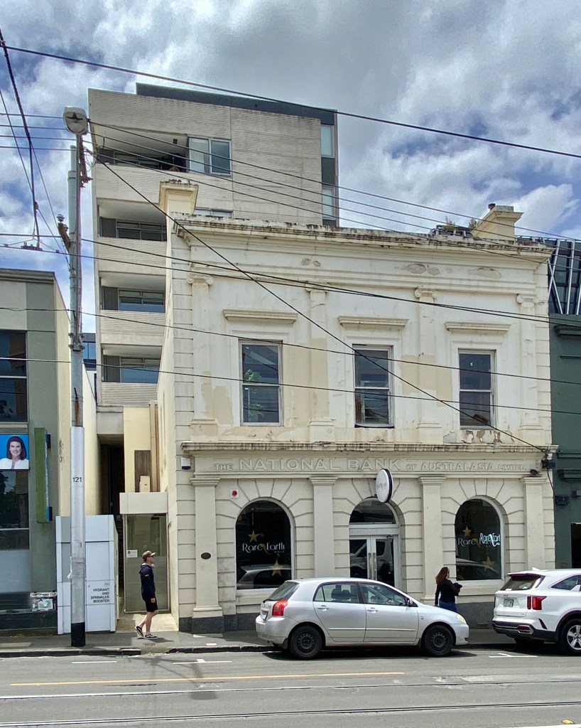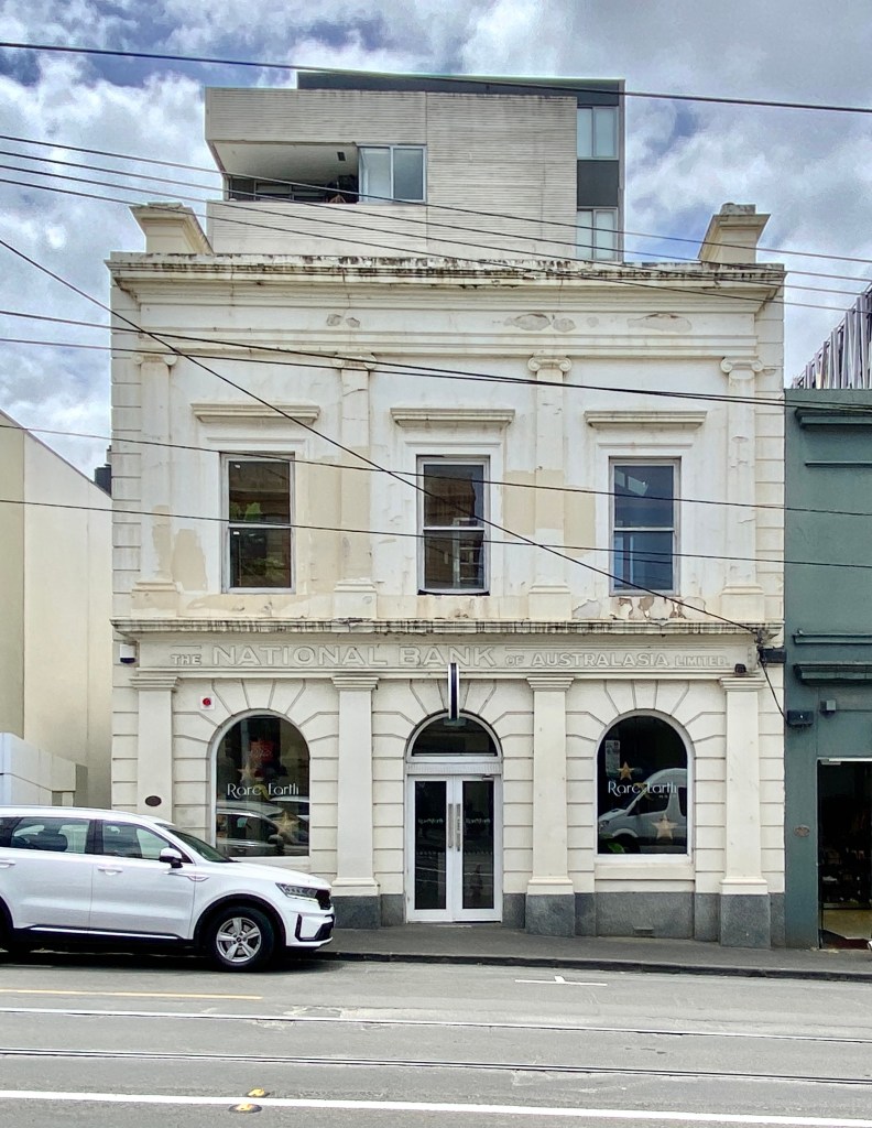 Nice early Victorian bank on Bridge Road Richmond, and more than just a facade retained ! It was built in 1865, making it the oldest bank in Richmond, for the National Bank of Australasia. Designed by Lloyd Tayler, who did a lot of banks around this time in restrained classical modes, this one a bit more elaborate than most, featuring pilasters on both levels, Tuscan below, Ionic above. Needs a paint though.