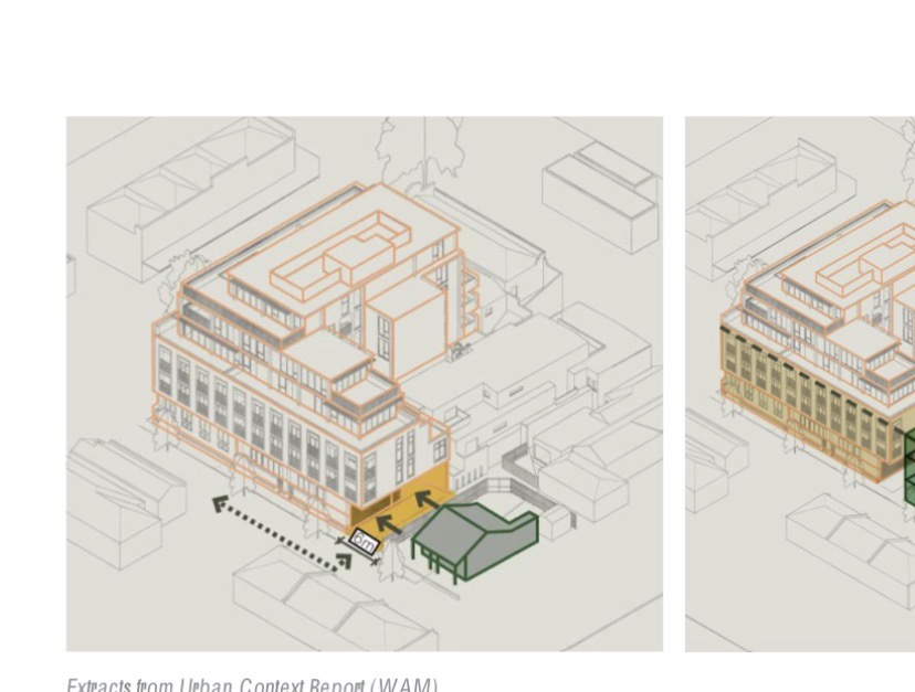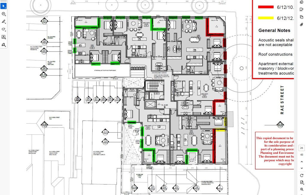 You might also think it’s just too big with terrace houses all around, but I’m not that fussed, it does set back a lot, a nice podium, but the side and rear will be visible, and possibly not attractive. It’s at one end of a Mixed Use Zone, so up to 8 floors is actually allowed!