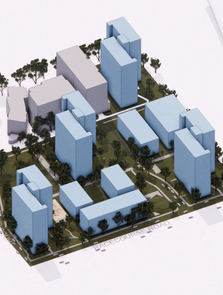 It’s one of the first three estates scheduled to be completely replaced. It’s hard to find any information on the plans, even though the demo was announced late 2023, and they’re emptying the two on Racecource Road already. The architects @___office got the block plan though, showing towers along the road, maybe as tall as the existing ?