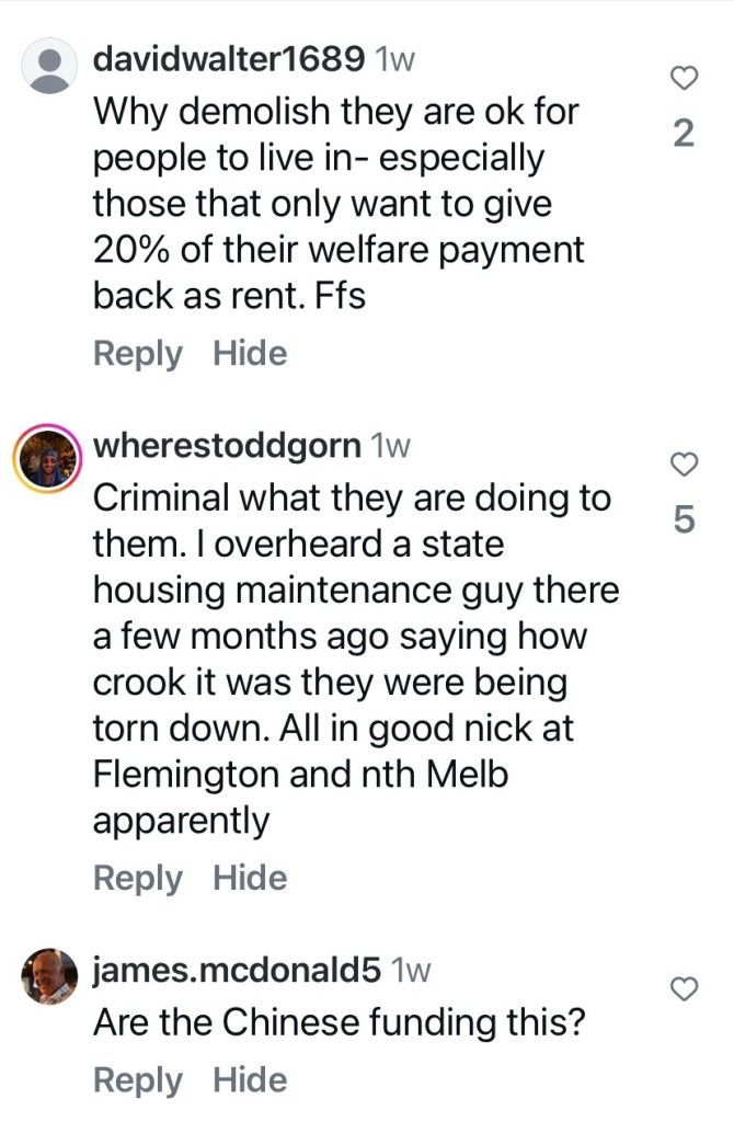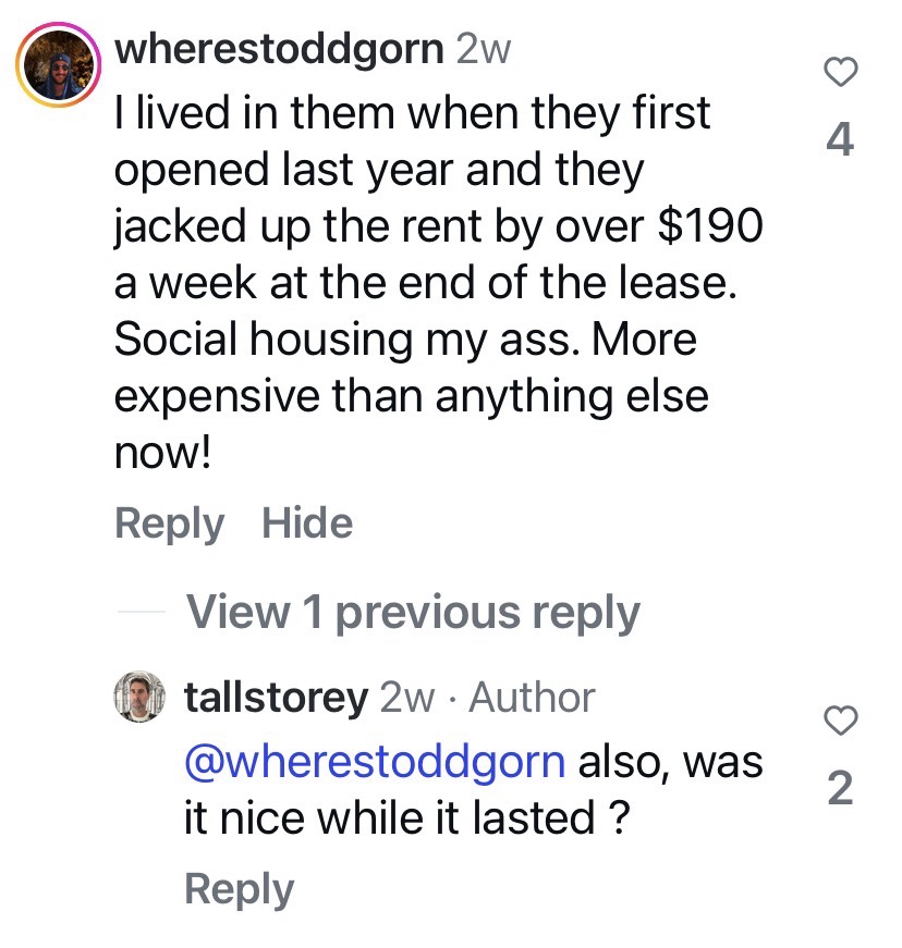 There’s also 119 affordable flats, open only to low income renters. The whole thing was designed by @sixdegreesarchitects, not as interesting as some of their stuff, but obviously working to a budget. Completed early last year, it felt pleasant to walk around, quite lush actually, the bamboo already quite tall, and there’s a couple of little parks. It’s all now managed by Community Housing Ltd, a not for profit, rather than the Office of Housing, but some previous renters returned and some from the adjacent towers now being emptied as well.