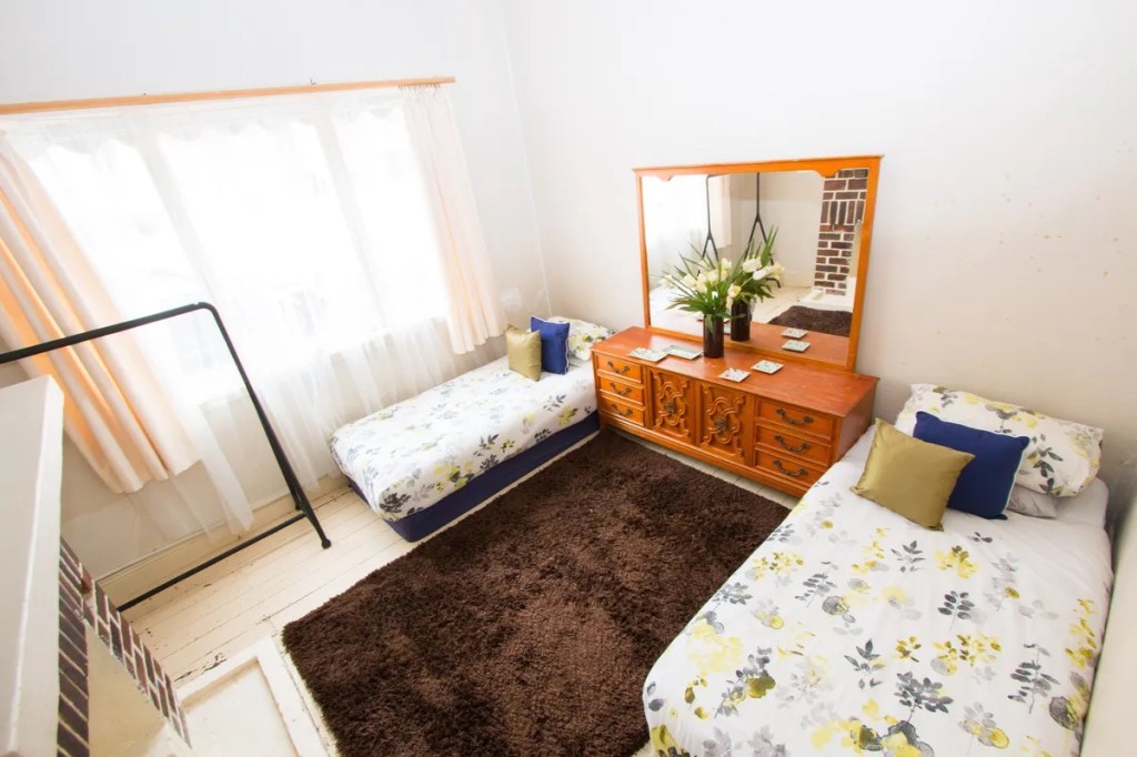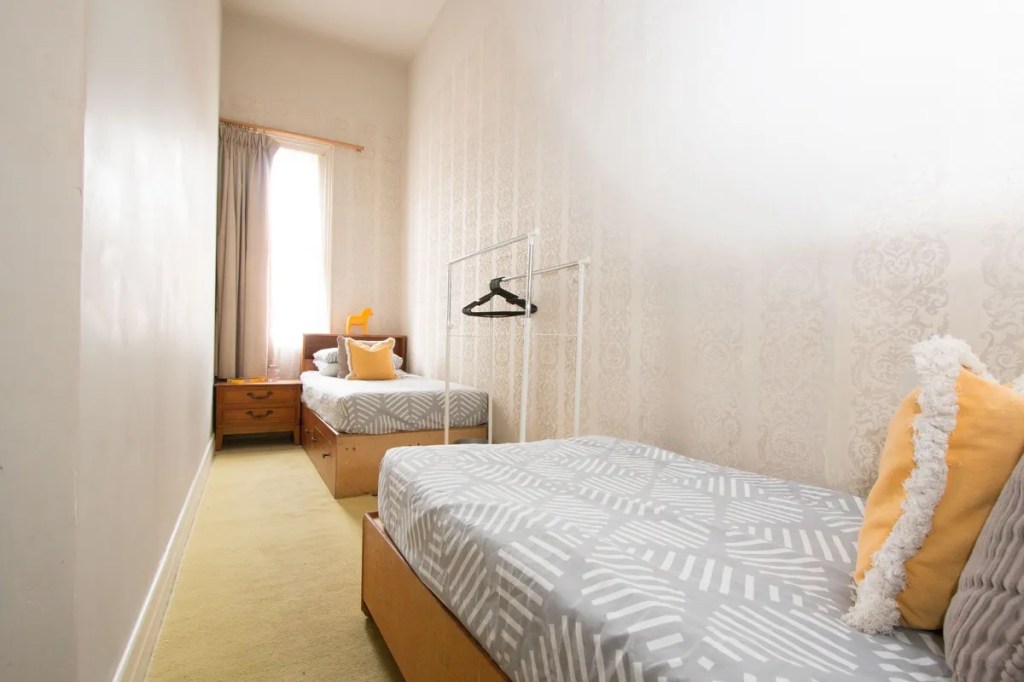 I thought it was maybe abandoned – but it’s advertised as a share house with 6 rooms and 9 beds ! Likely it was turned into a boarding house a long time ago, dividing up the two main rooms, and otherwise hadn’t been renovated since the 50s I’d wager. That rear lounge is I think the back verandah just glassed in, so the Victorian house is pretty well preserved. Big back garden.