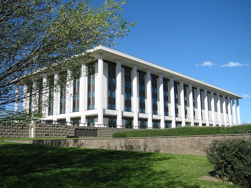 It was built in 1969, and designed by Godfrey Spowers in modern ‘classical’ style, but with the beam half way up and the curvey detached cornice thing, it just didn’t work. The 1968 National Library in Canberra is much better. The interiors here weren’t much either.