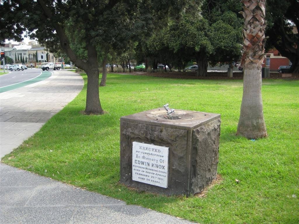 The fountain was a monument to a Boer War soldier from 1902, but was only a base for ages with drinking taps on top. It was then reinstated in shadow form. Cute.