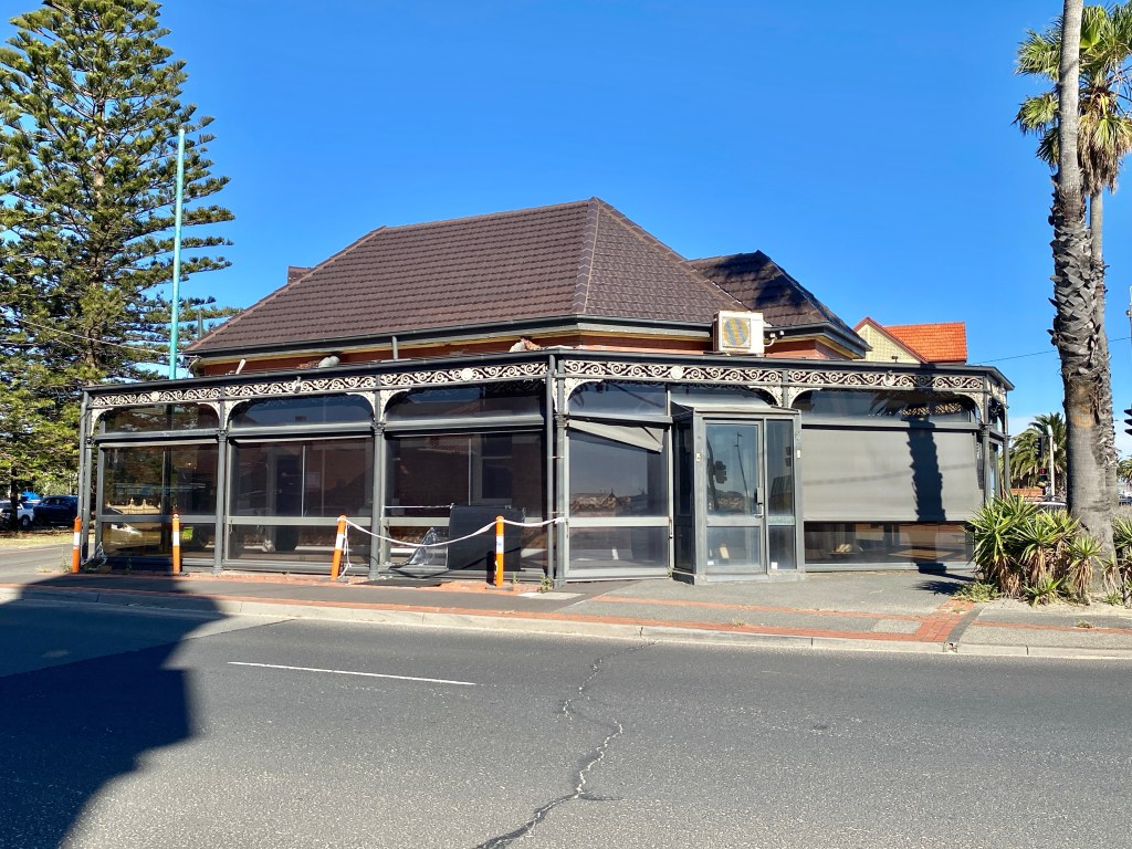 This is the inside of the kiosk at the end of Kerferd Road facing the Albert Park beach – didn’t realise it had nice brickwork arches etc behind all the glass. I always thought it didn’t look like much from outside and was an unattractive spot for a cafe. And in fact it’s been a hairdresser since 2010. It’s been empty since maybe 2022, went out for tender in 24, but no takers. As part of the process Council commissioned a Conservation Management Plan, so now I can tell you most of the history.
