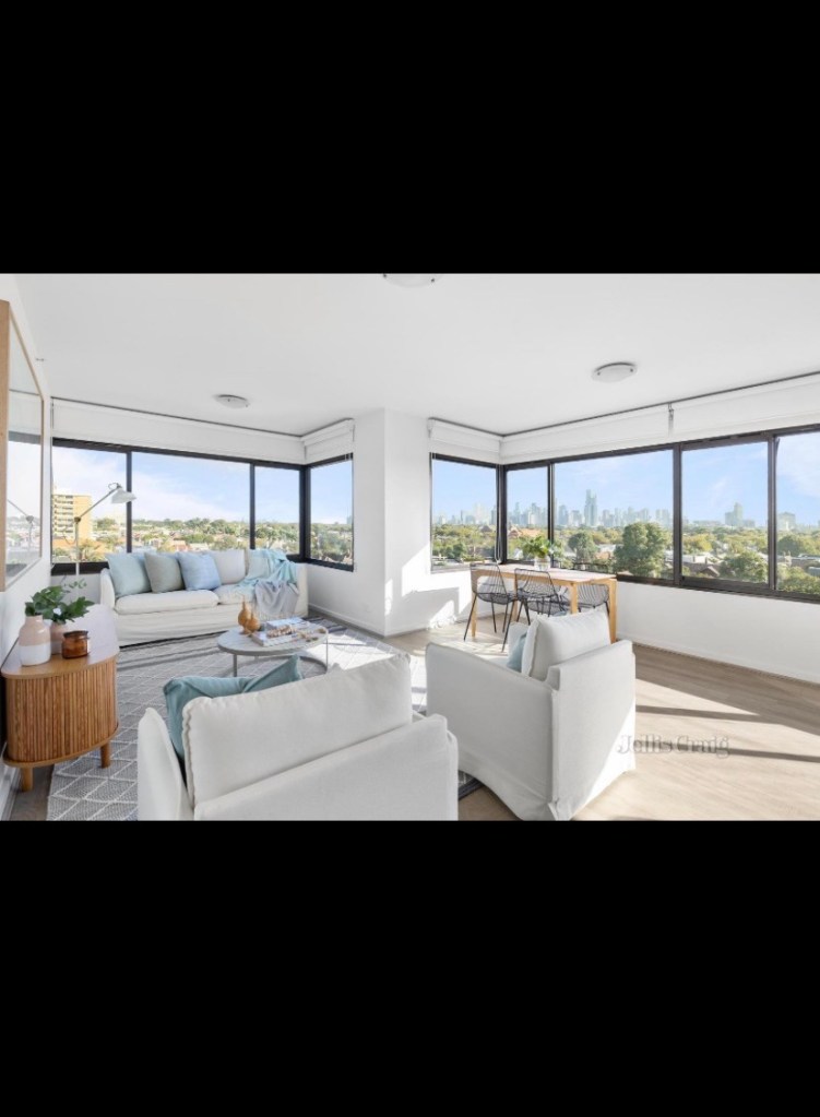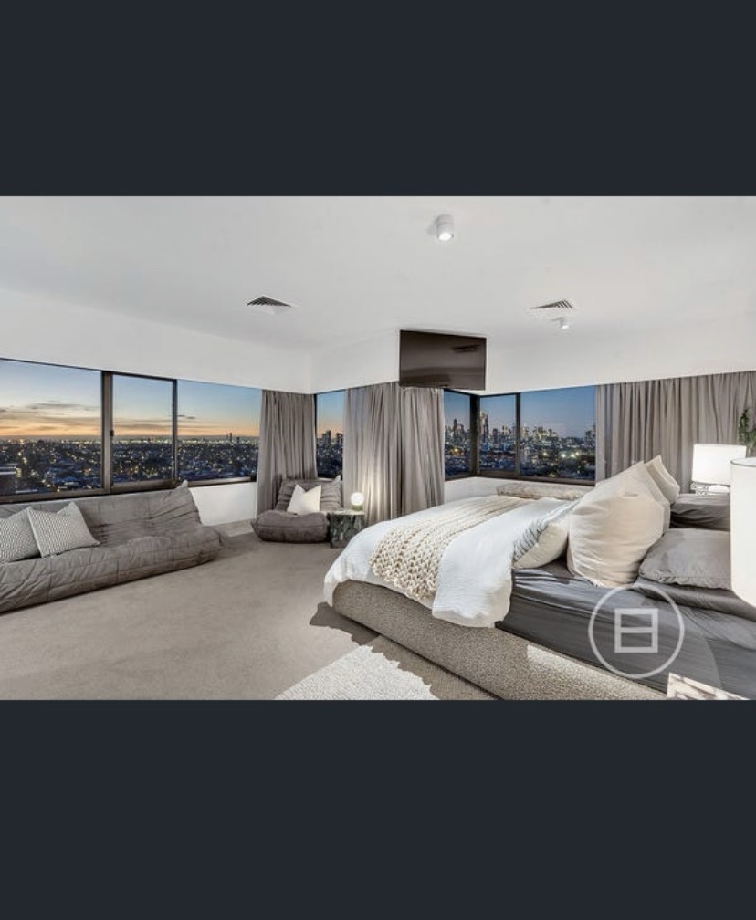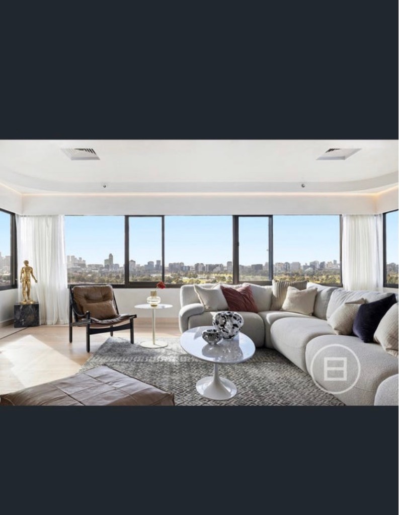 A penthouse was sold last year that had a pretty groovy makeover, with a shiny ceiling with curved cornices. Also found a more typical one lower down; nice views.