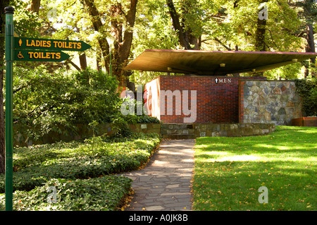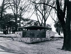 A rather striking #publictoilet that once stood in the Fitzroy Gardens until just on 20 years ago; the first photo is one I have left over from a @nationaltrustvic exhibition on historic public toilets in 1998. Lovely overlapping brick and stone walls, with a dramatic cantilevered roof supported on a single post.