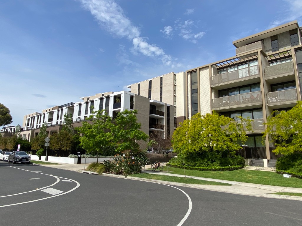 The earliest part of Caulfield Village, the redevelopment of the Caulfield Racecourse carparks as high density housing, is the block to the west.