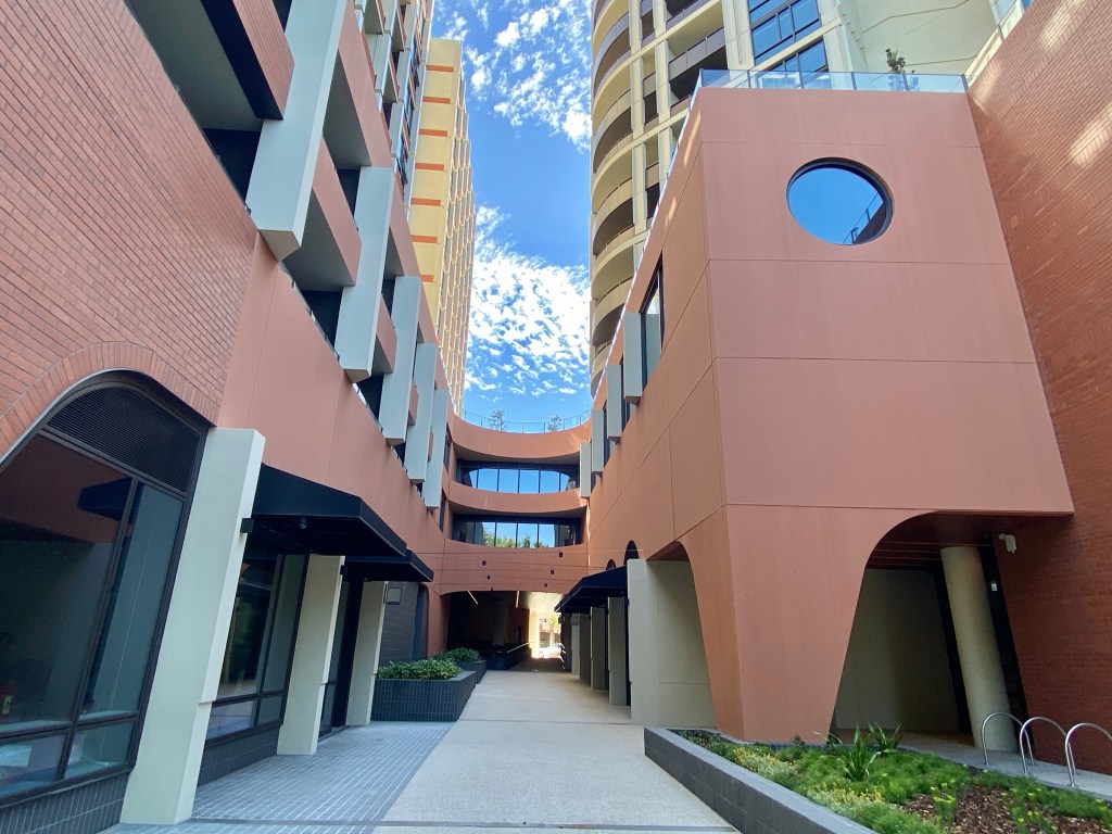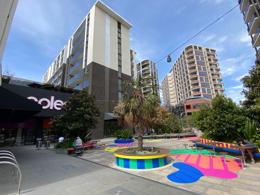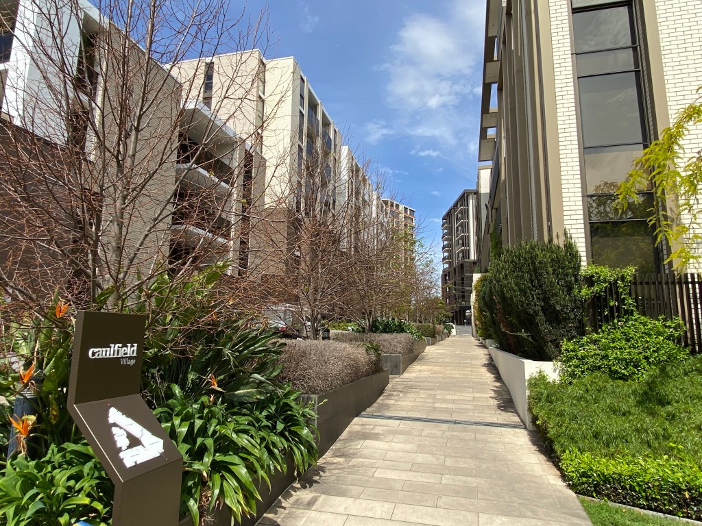 The main part of Caulfield Village is called Realm, and it’s not very nice to look at. Brown and beige, big lumpy blocks and a bit cheap looking – but lots of apartments right next to Caulfield Station, the no 3 tram, and Monash Caulfield.