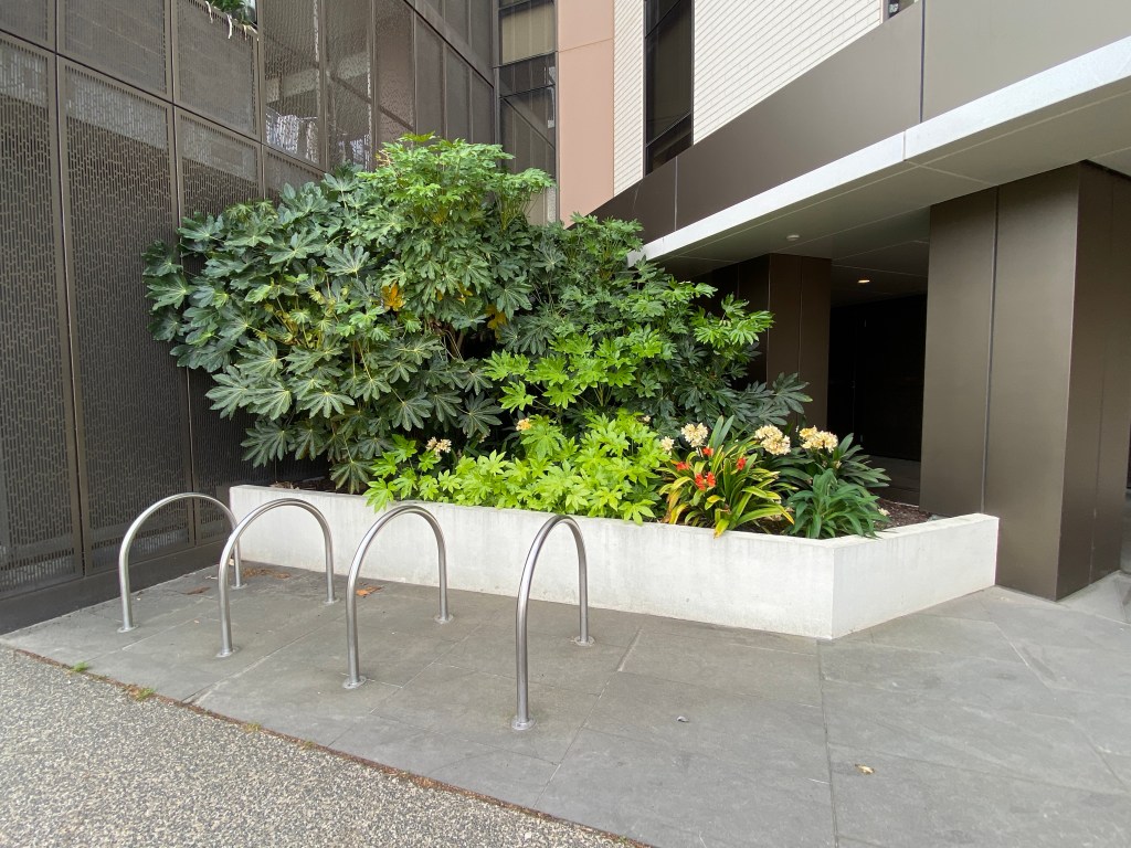 But this kind of massive closely spaced blocks thing makes me wonder if fewer taller blocks would have been better. The public realm experience is also strange – I mean it’s not bad, it’s spacious, it’s just odd. Lots of different walkways, footpath widths, random plantings, and a plaza in the middle that’s largely overshadowed by the buildings even this time of year, with brightly coloured things clearly designed to cheer it up !